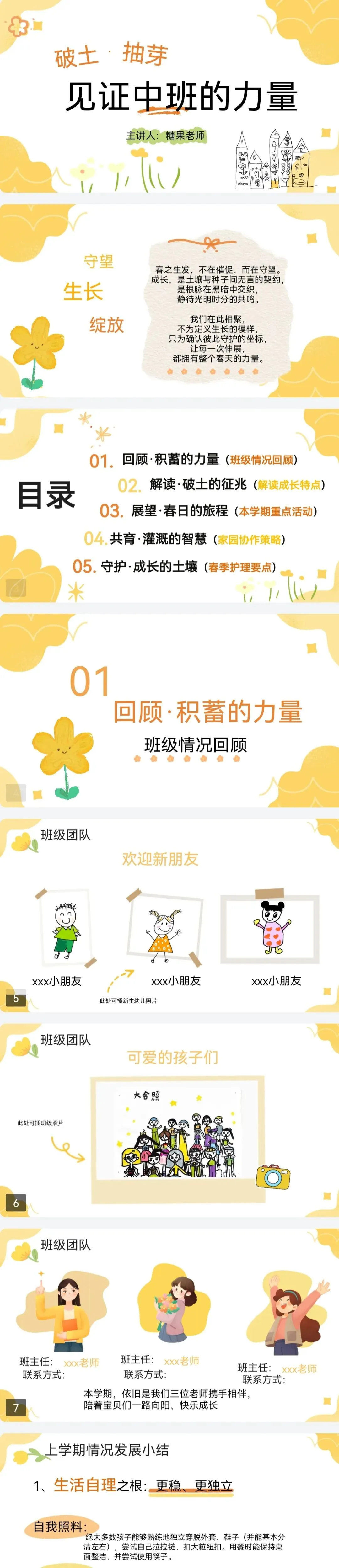 【家长会】幼儿园中班下学期开学家长会ppt+发言稿