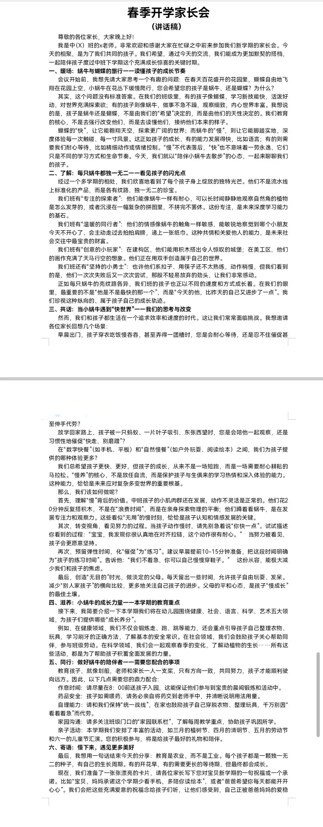 【家长会】幼儿园大班下学期开学家长会ppt+发言稿