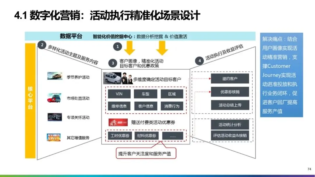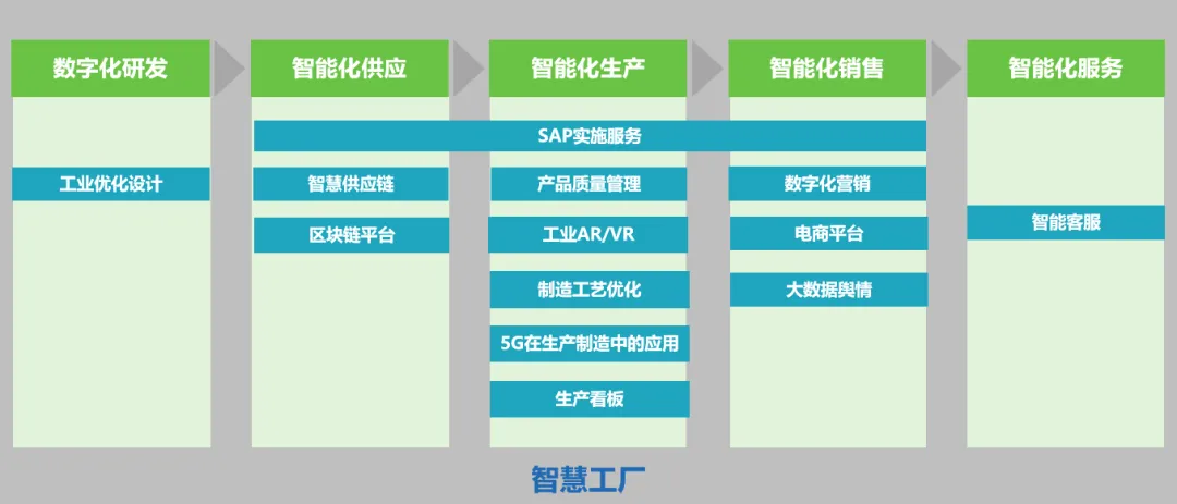 方案核心涵盖六大内容模块,同时配套工业互联网平台搭建与 SAP 实施服务,形成全流程转型支撑。数字化咨询服务结合企业实际做转型规划与成熟度评估,定制专属落地路径;数字化研发聚焦工业优化设计,覆盖汽车、航空航天、船舶海工等多领域,实现产品设计的正向创意评估与逆向优化;智能化供应打造端到端智慧供应链,落地库存优化、智能排产、运输调度等能力,结合区块链技术提升供应链透明度;智能化生产整合质量管控、工艺优化、5G+AR/VR 应用、实时生产看板等能力,打通产线数据孤岛;智能化销售融合数字化营销、电商平台、大数据舆情分析,实现精准获客与市场洞察;智能化服务以智能客服为核心,提升客户响应与服务效率。