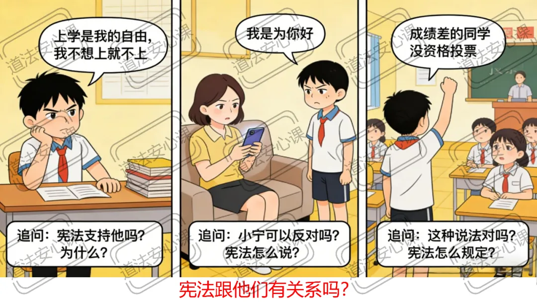 这三个情境告诉我们:宪法与我们每个人息息相关。从出生时的权利认定,到入学后的受教育保障,再到成年后的选举权行使,宪法始终伴随我们成长。我们的一生都离不开宪法的保护。