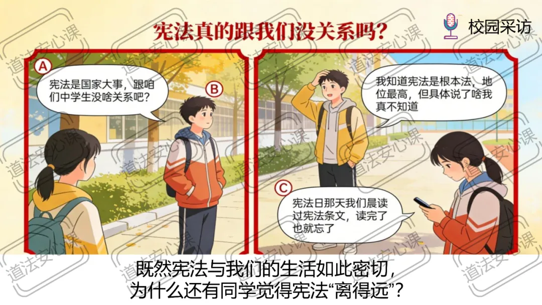 问题3:既然宪法与我们的生活如此密切,为什么还有同学觉得宪法“离得远”?