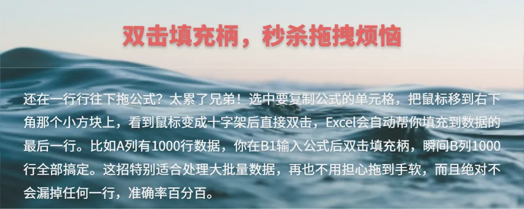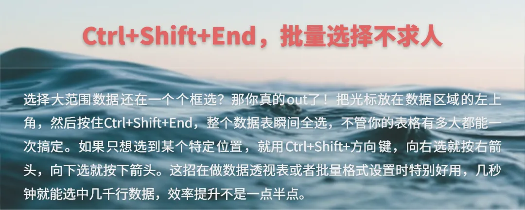 说真的,看到很多小伙伴处理Excel表格时,鼠标点得手都要抽筋了,一个个单元格慢慢选,一行行数据慢慢拖,效率低得让人心疼。其实Excel里藏着不少"偷懒"神技,掌握了这几招,保证让你告别重复劳动,工作效率直接起飞。今天就跟大家分享3个超实用的快捷操作,学会了绝对让你在办公室里秒变Excel高手!