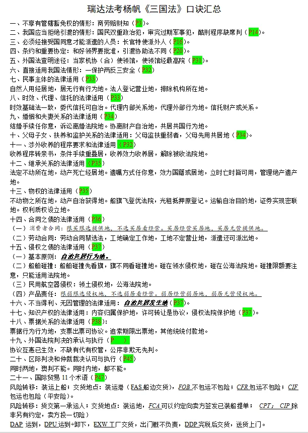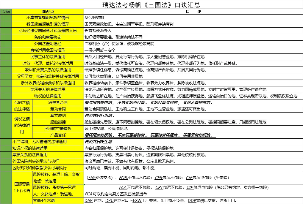 三国法女皇瑞达法考杨帆老师的口诀,我制作了word和excel版本,利于随身携带记忆。