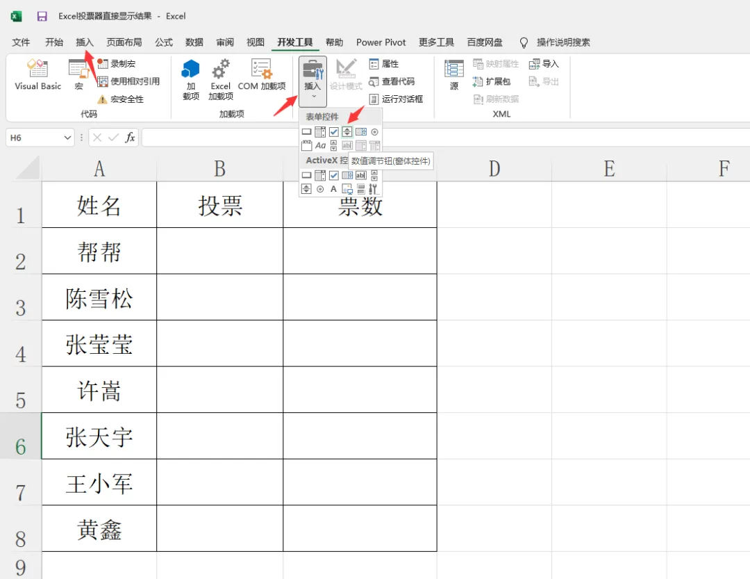 若想让Excel投票器具备自动计票功能,首要步骤是嵌入一个数值调节钮。在Excel的“开发工具”选项卡中,找到“插入”按钮并点击,随后在弹出的表单控件列表里,仔细查找并选中“数值调节钮(窗体控件)”。