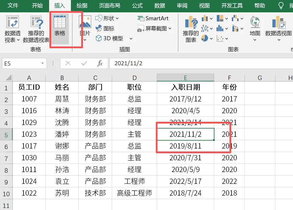 插入表格: 按快捷键 Ctrl + T,或者点击【插入】 -> 【表格】。