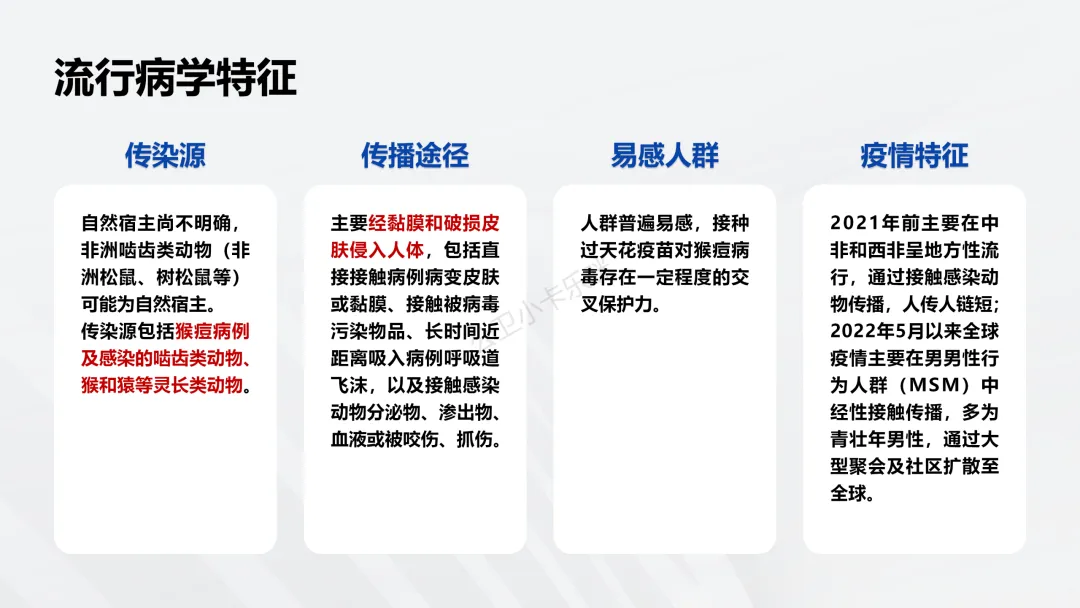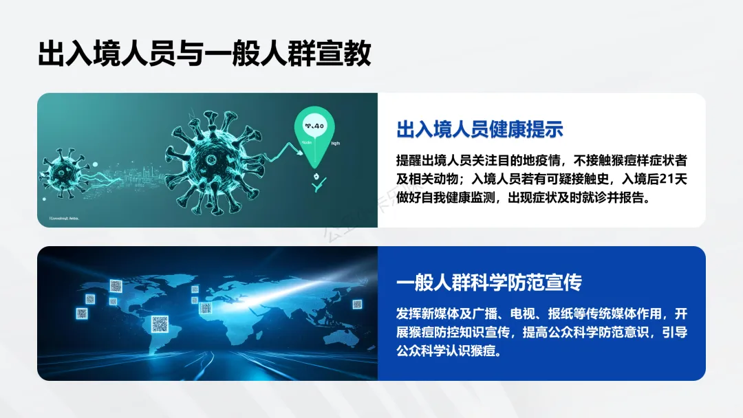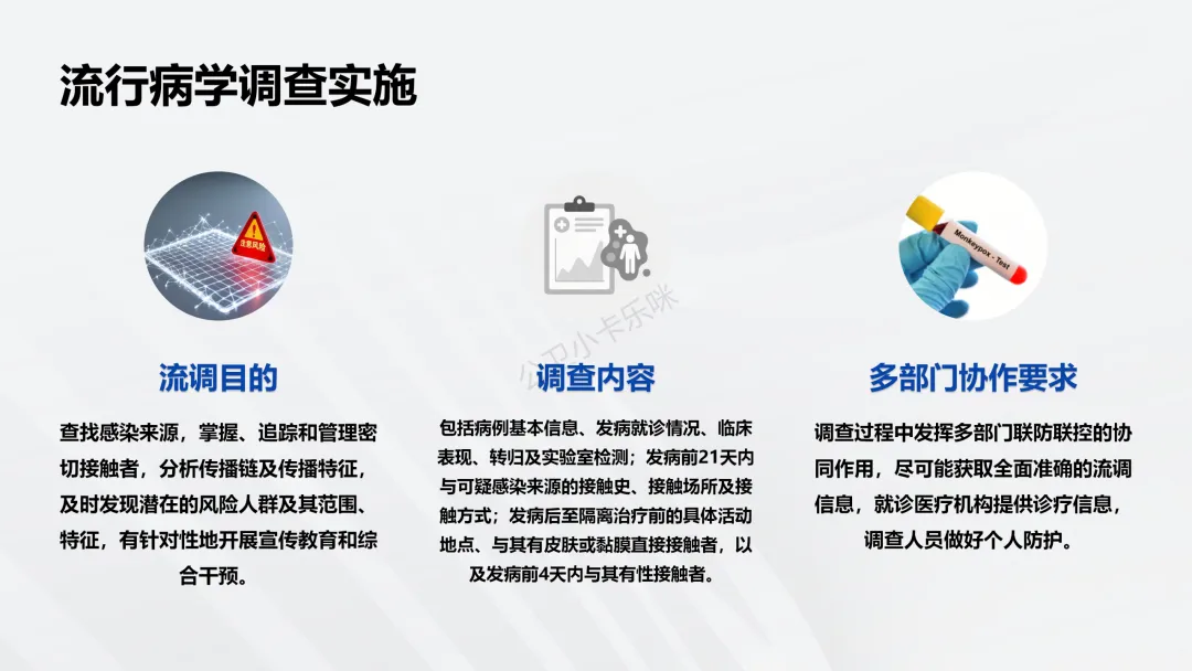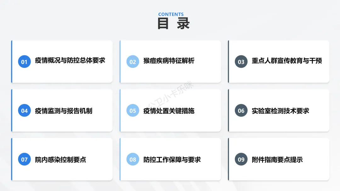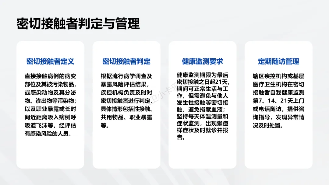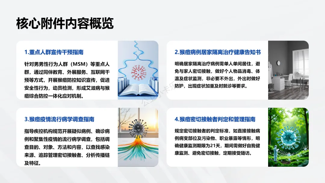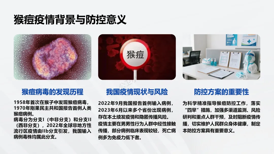 自2022年全球暴发以来,猴痘疫情已从非洲地方性流行扩展至全球各大洲,WHO多次宣布其为"国际关注的突发公共卫生事件"。当前,猴痘已转入常态化防控阶段,但病毒变异、传播方式演变以及不同分支的差异化处置,仍对公共卫生体系和临床诊疗提出持续挑战。我们根据国家猴痘防控相关指南,将核心内容梳理为PPT供大家学习!