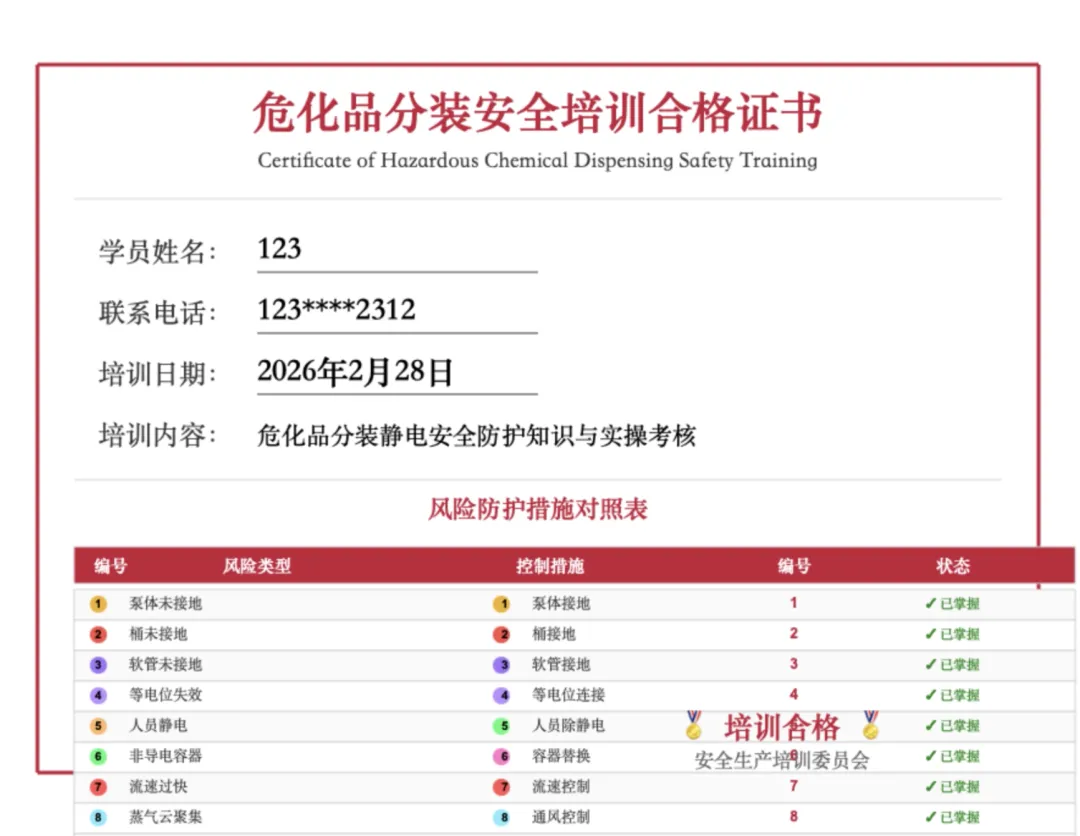 通关10个关卡后,系统自动生成带姓名、日期的【电子培训合格证】。截图发群,这才是新时代的培训闭环。