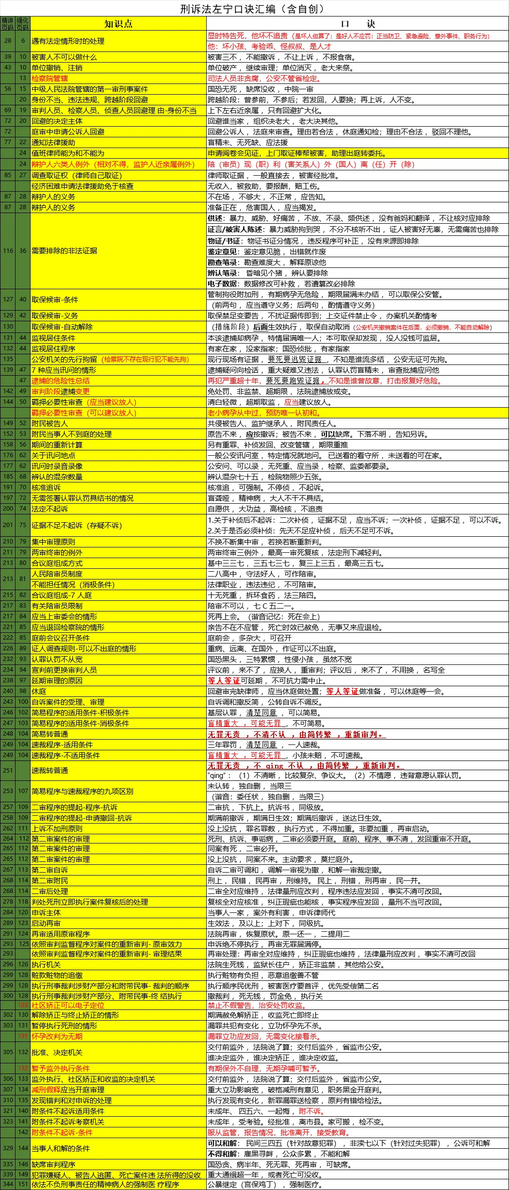 方圆众合法考左宁老师的口诀(个别口诀为本人原创),我制作了excel版本,利于随身携带记忆。