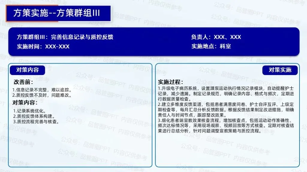 1.升级电子病历系统,设置踝泵运动执行情况记录模块,自动提醒护士记录,减少遗漏。制定记录规范,明确记录内容、格式与频次,定期进行数据质量检查。