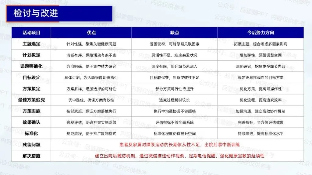 3.细化患者端宣教效果核查流程,增加核查点,包括运动动作准确性、频次达标情况等,采用现场观察、视频回放等方式核查。定期对核查结果进行总结分析,针对问题调整宣教策略与质控流程。