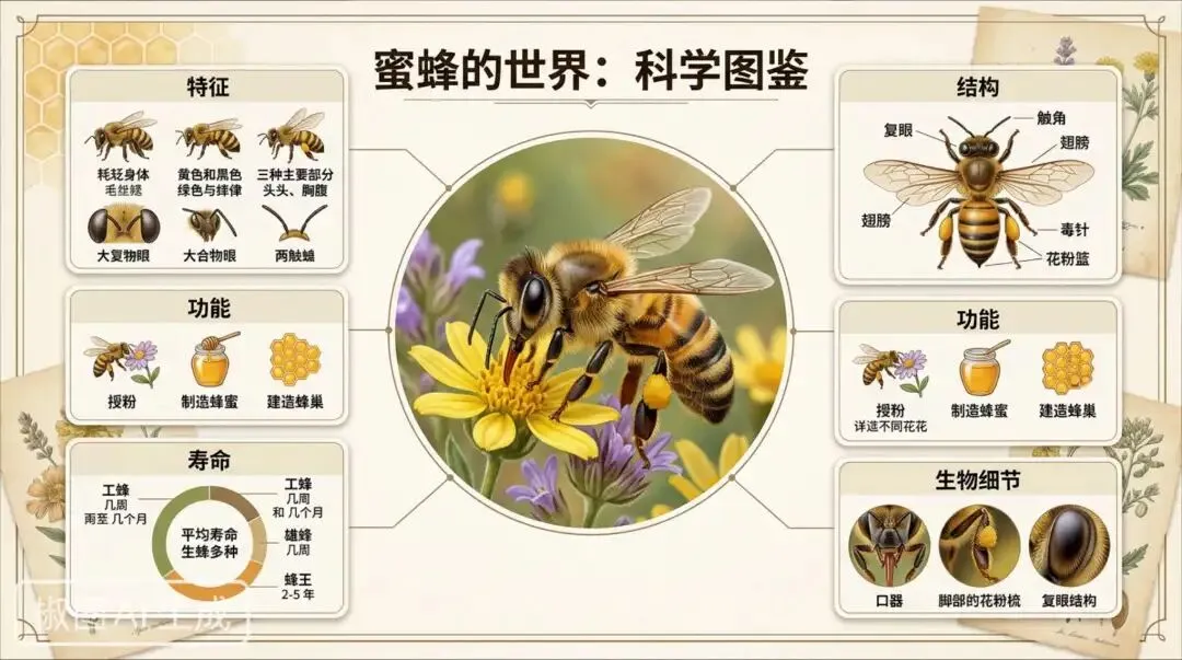 提示词(直接复制):生成一张16:9横版中国传统复古风自然科普信息图海报,主题《蝴蝶》。宣纸质感浅米色背景,轻微旧化纹理与简洁双线边框,整体水墨雅致风格(墨黑线描+淡彩晕染点缀),扁平矢量结合工笔风插画。顶部居中大字书法标题《蝴蝶》,字体醒目占画面视觉核心,下方小号副标题“自然界的优雅舞者”。 画面仅保留三个清晰大模块(文字精简,每块不超过25–30字,大字排版): ① 形态特征 ——“双翅对称,色彩斑斓,触角细长。” ② 生命周期 ——“卵→幼虫→蛹→成虫,完全变态。” ③ 生态意义 ——“参与传粉,维持生态平衡。” 每个模块搭配一个简洁插画元素(线描蝴蝶结构示意、生命周期小图标、花间飞舞剪影)。底部仅保留一条简洁流程箭线展示生命周期。整体留白≥50%,避免密集小字,强调清晰大标题与少量核心文字,画面干净高级,4K分辨率,适合展览级印刷,无英文无卡通风。 --ar 16:9 --v 6.1 --style raw