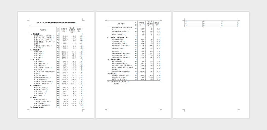 其中,第1、2页的表格实际上是同一个表格。第3页的表格为单独的表格。第1个表格前面带有不属于表格的标题文字。