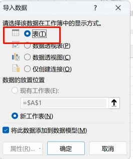 选择“表”,确定。两个表格的数据就会直接加载到excel中。