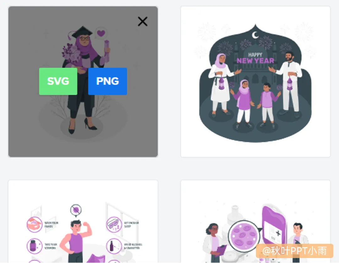 今天给大家分享 3 个压箱底的、设计师常用的宝藏素材网站:不仅免费而且质量超级高!赶紧点赞收藏起来,以后做 PPT 绝对用得上!视频操作太快没看清?没关系,图文教程我们也给你安排上了~最惊艳的是,它可以根据你的 PPT 整体配色,随意更改插画颜色!而且下载非常方便,支持 SVG 和 PNG 两种格式,轻松满足你不同的设计需求。里面不仅有海量的精美图片,还有很多自带透明背景的免抠素材。点击鼠标右键,选择【复制图像】,再去 PPT 粘贴为图片,就可以使用了。其实,好的素材只是加分项,真正能搞定老板和客户的,还是 PPT 里清楚明白的内容和排版。与其每次做 PPT 都自己瞎琢磨、熬夜掉头发,不如跟着秋叶的老师学几招真正管用的技巧!现在加入《秋叶 PPT 3 天实战集训营》,我们手把手带你快速提升 PPT 技能!课后有练习文件,遇到问题也有助教随时答疑,不用担心没人教、学不会~点击下方公众号卡片