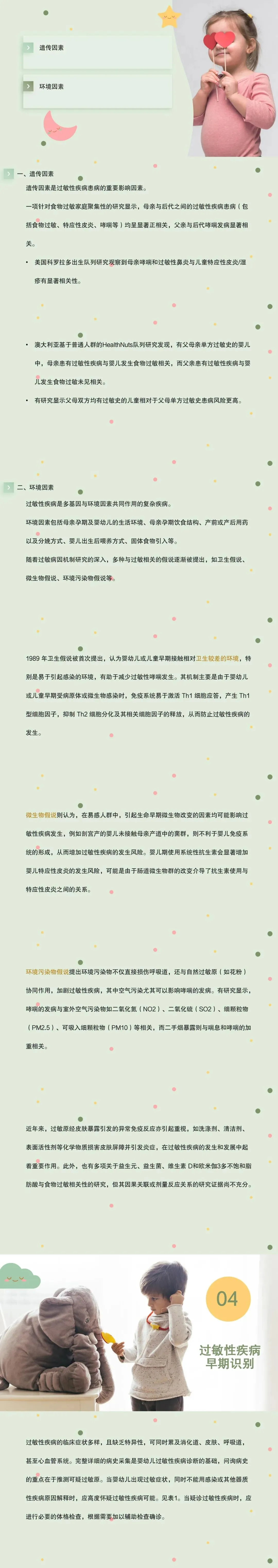 - 系统梳理流行病学特征、影响因素、过敏性疾病早期识别以及一系列