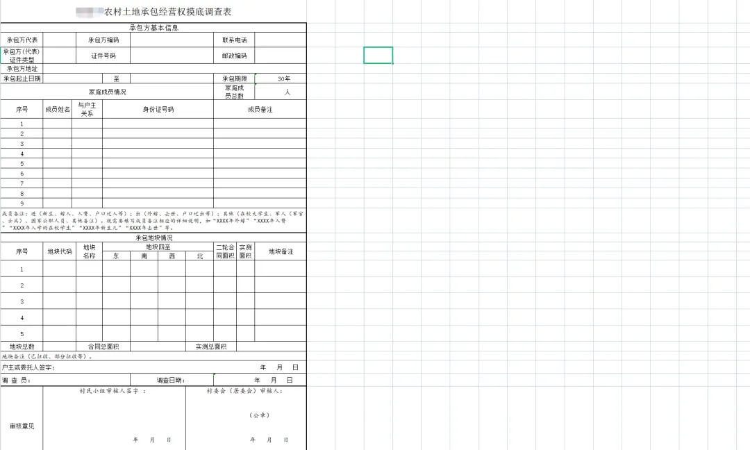 客户给了一个excel样式表,要求家庭成员数量、承包地块数量根据承包户的情况确定,表格中不能多也不能少。