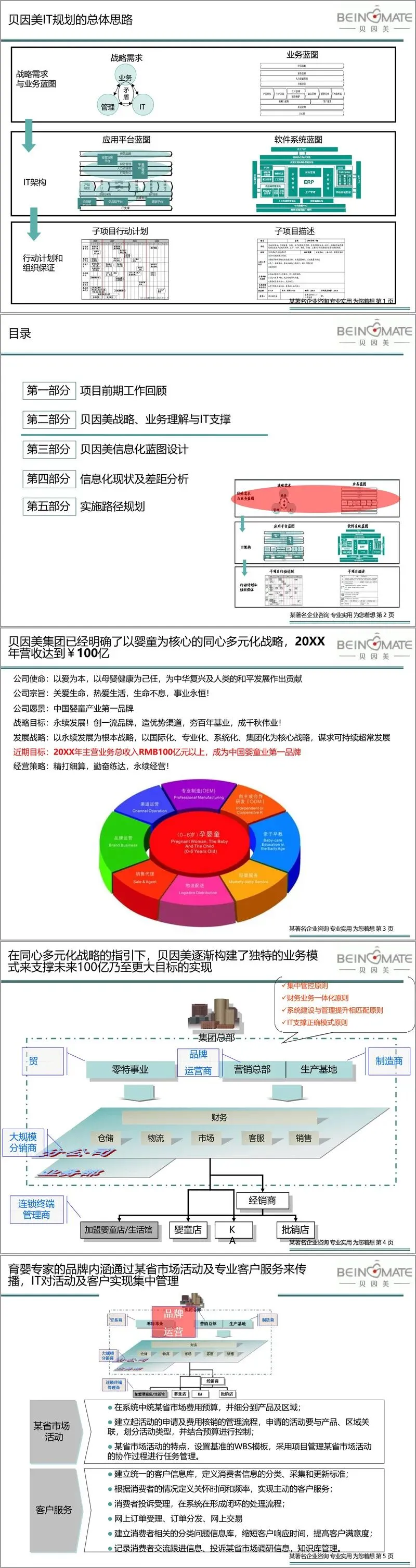 在婴童产业竞争日趋激烈的背景下,数字化转型成为企业实现规模扩张与效率提升的核心支撑。某著名企业咨询为贝因美量身打造的这份 IT 规划咨询报告,立足企业战略与业务实际,构建了覆盖全价值链的信息化建设蓝图,为其未来 2-3 年的数字化发展提供了系统性指引。