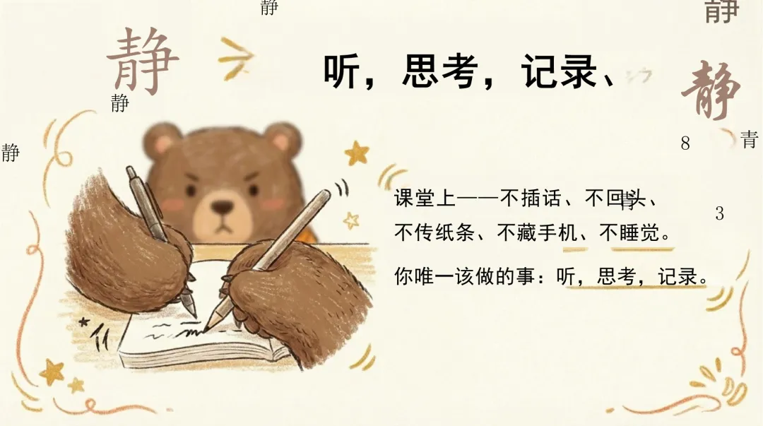 ·老师:同学们早上好!我是你们的班主任。今天,我们没有寒暄,也没有破冰游戏,我们要直接进入正题——立规矩。新学期开始了,我们需要收心归位,以全新的面貌迎接挑战。现在,没有掌声,我们直接开始。