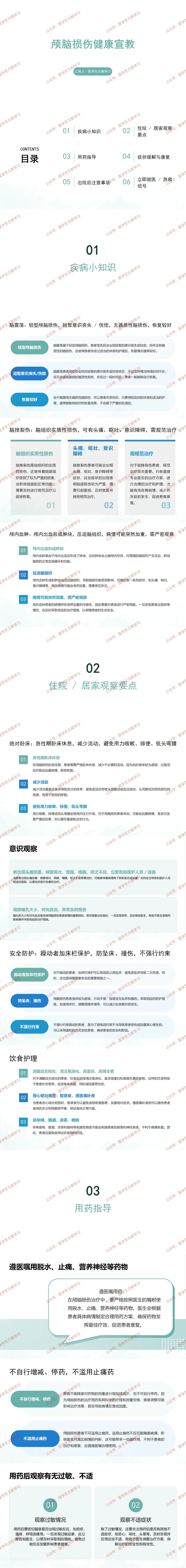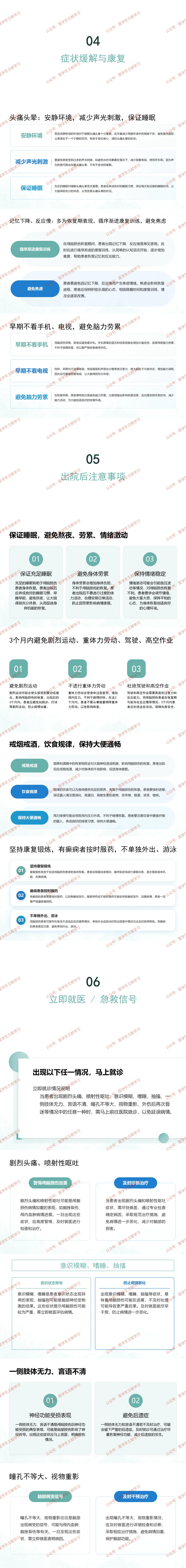 意识监测:出现头痛加重、频繁呕吐、烦躁、嗜睡、呼之不应,立即告知医护人员或送医。