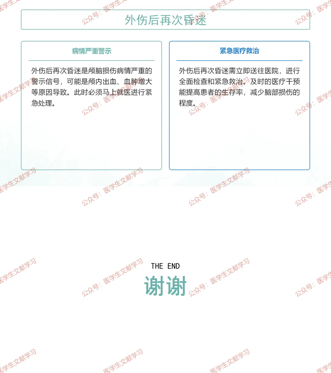 外伤后再次昏迷(病情严重警示)。