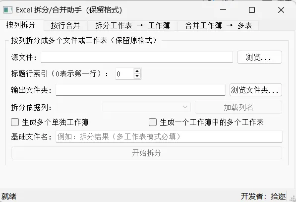 别担心!今天给大家推荐一款免费、开源、轻量级的Excel拆分合并工具,由开发者“拾迩”打造,完全保留单元格格式(字体、边框、背景色、对齐等),让你像操作单个文件一样轻松处理批量任务!