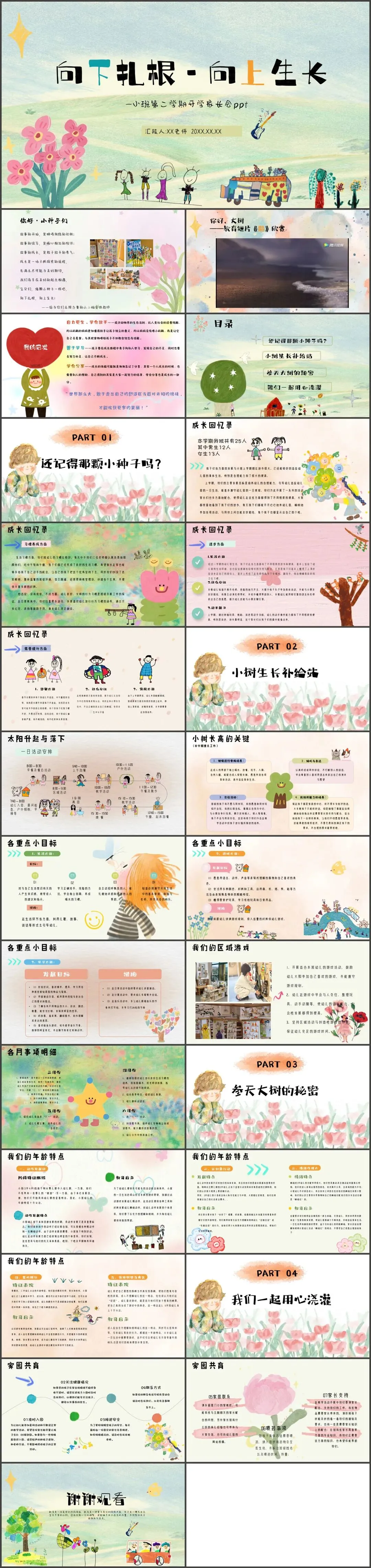 小班春季家长会《向下扎根 向上生长》PPT+发言稿