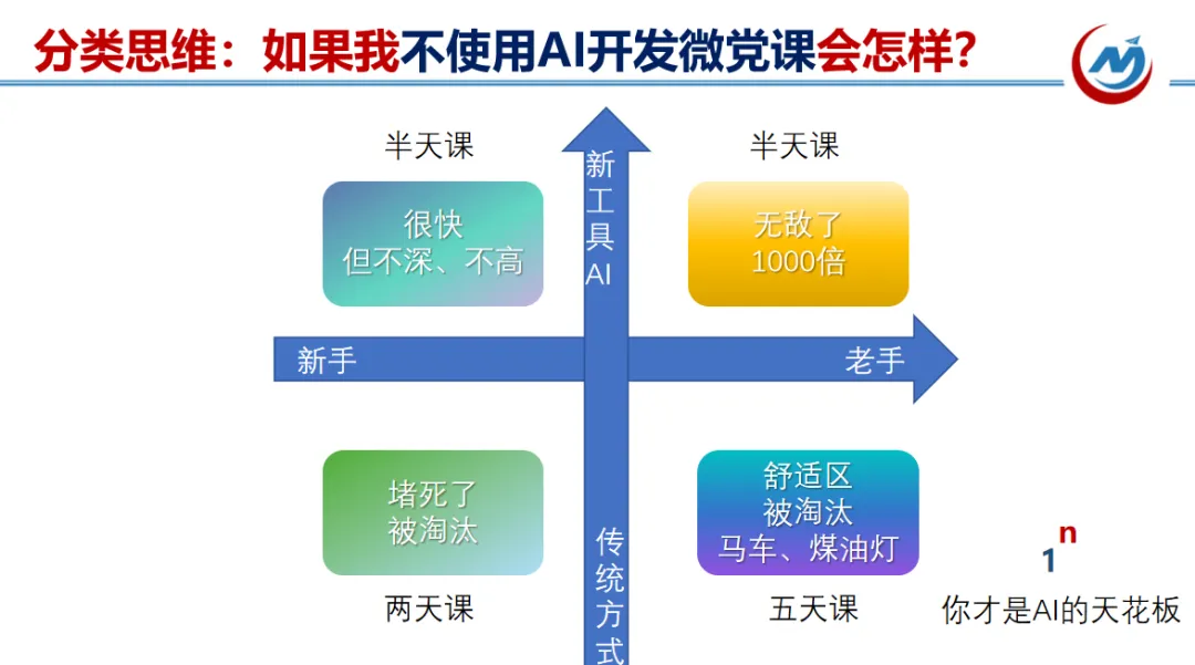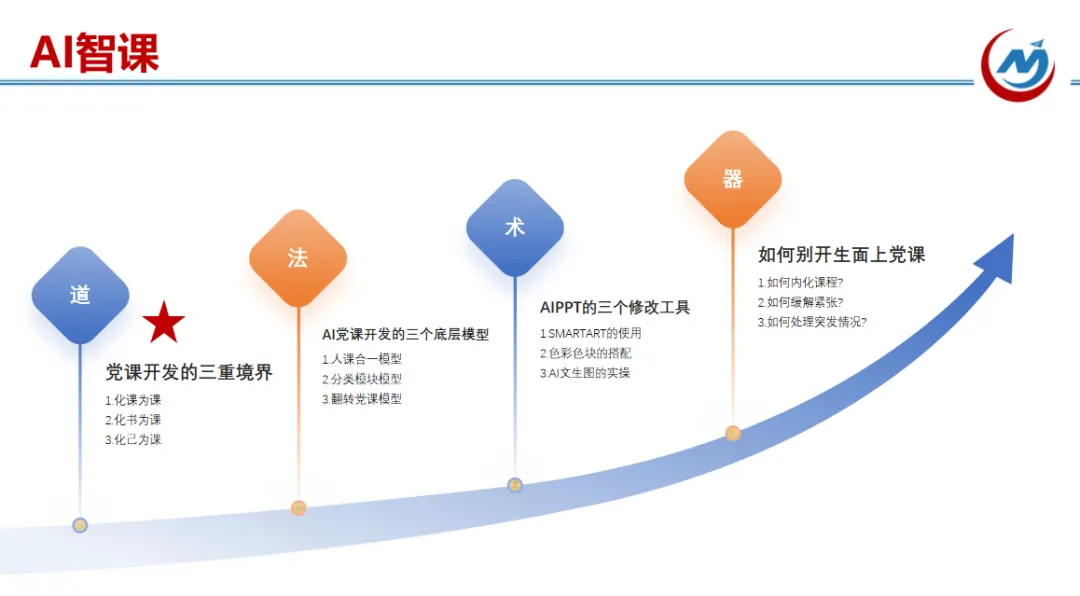 昨天晚上课程直播的是《AI+微党课》,主要关于AI时代微课敏捷研发流程与底层逻辑的专项培训,旨在解决传统微课开发周期长、效率低的问题,通过引入AI工具与五星教学法,实现从5天到半天的开发效率跃升。