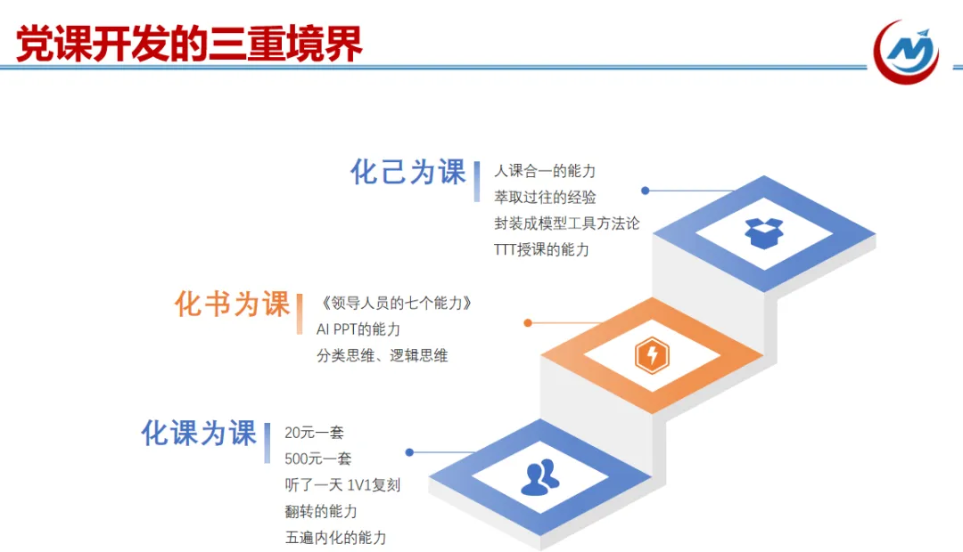 - 第四步:手搓板修改。讲师需逐页、逐段进行人工修改,加入党建元素、互动设计等,确保内容深度与思想性。