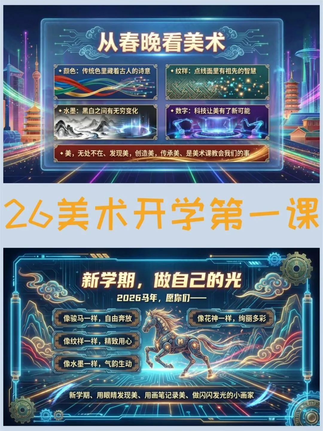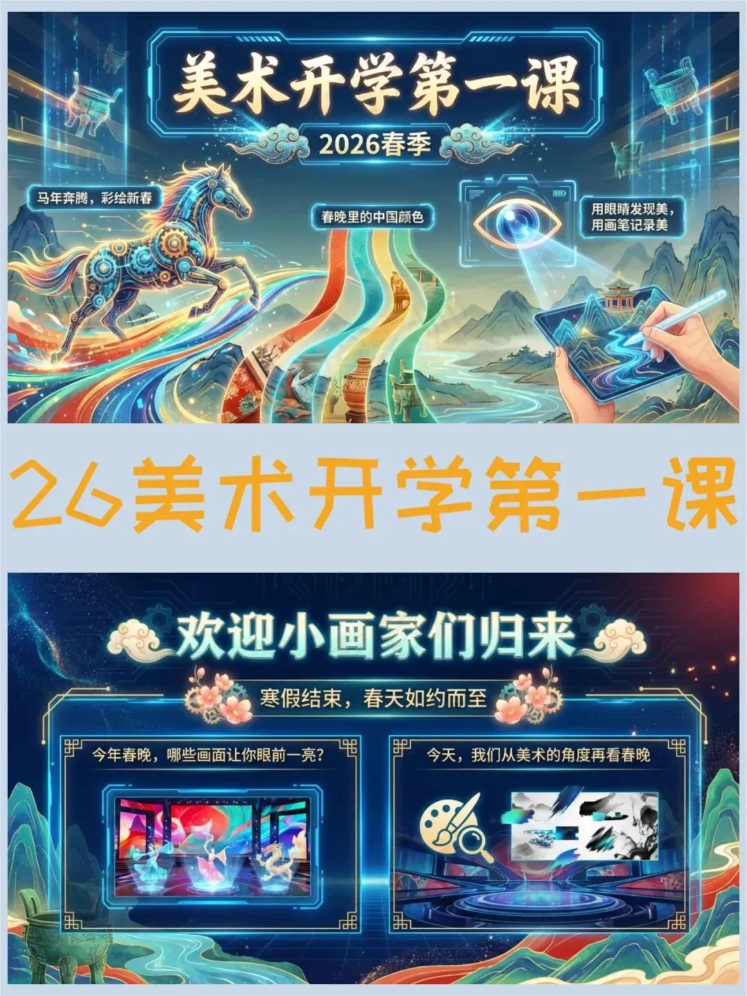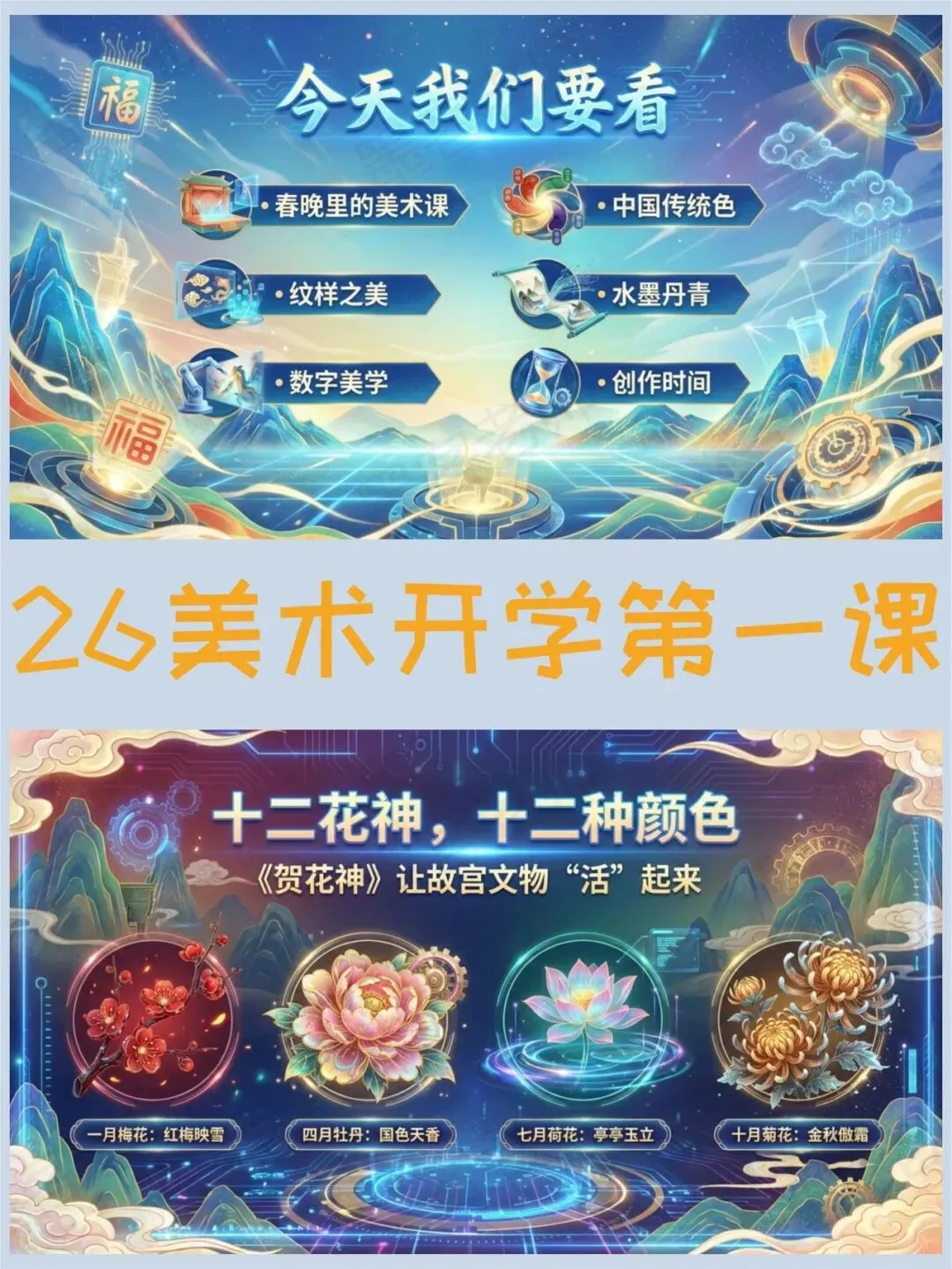 >美术开学第一课PPT,春晚里的中国颜色绝了(课件+发言稿)
