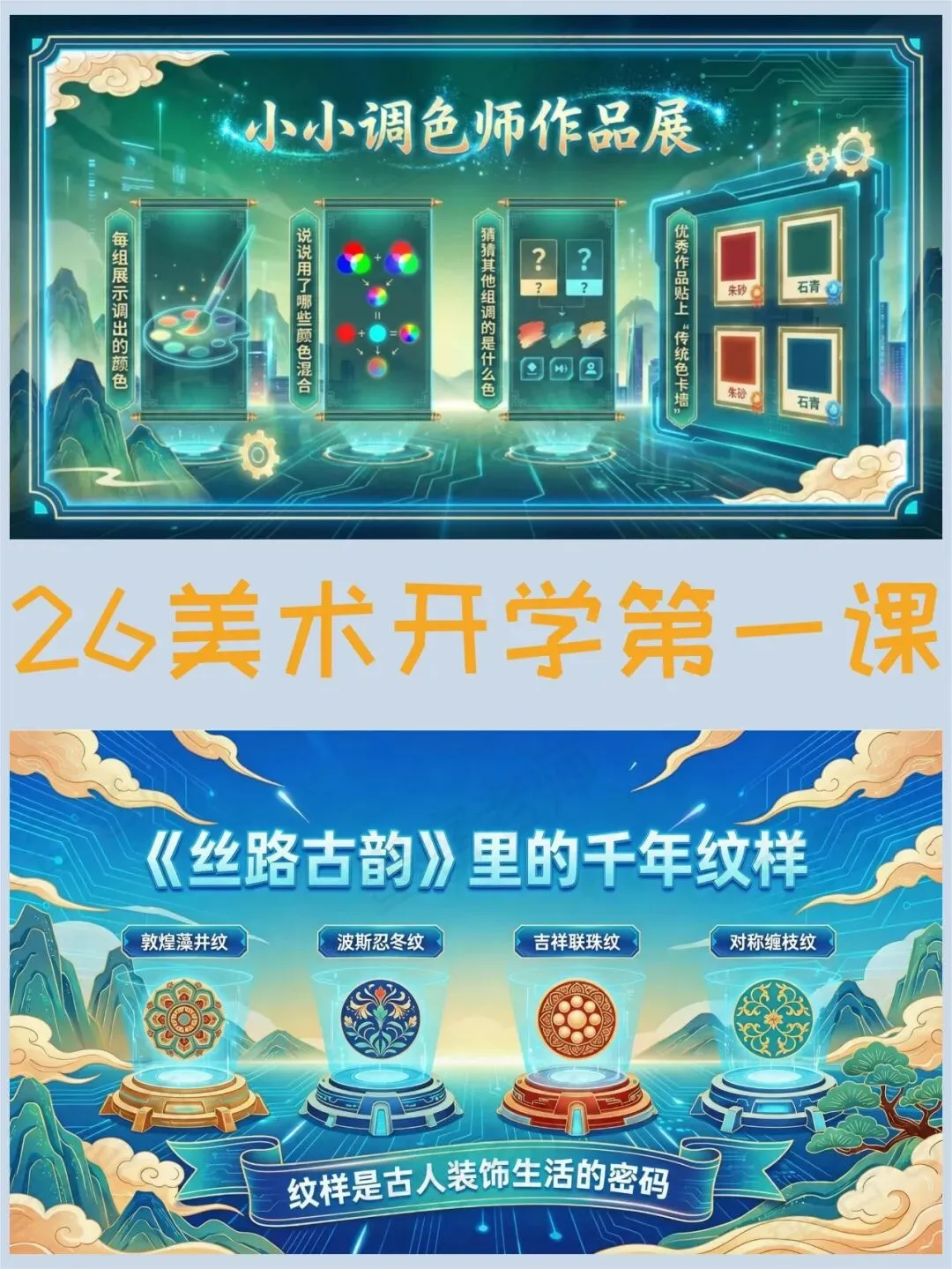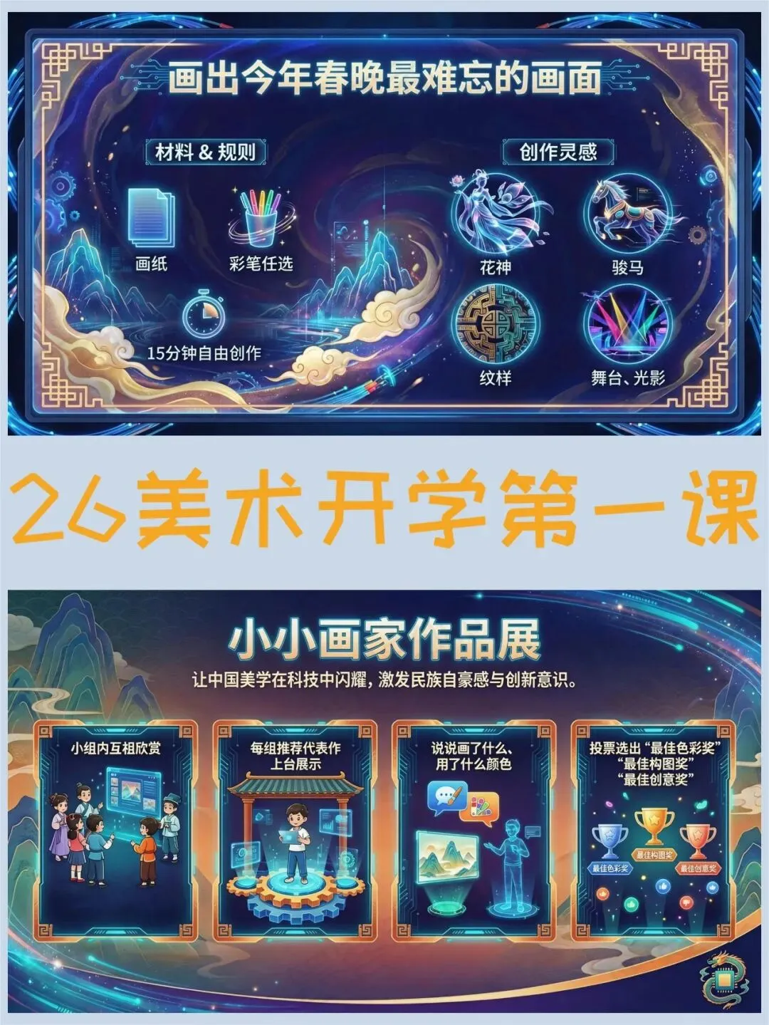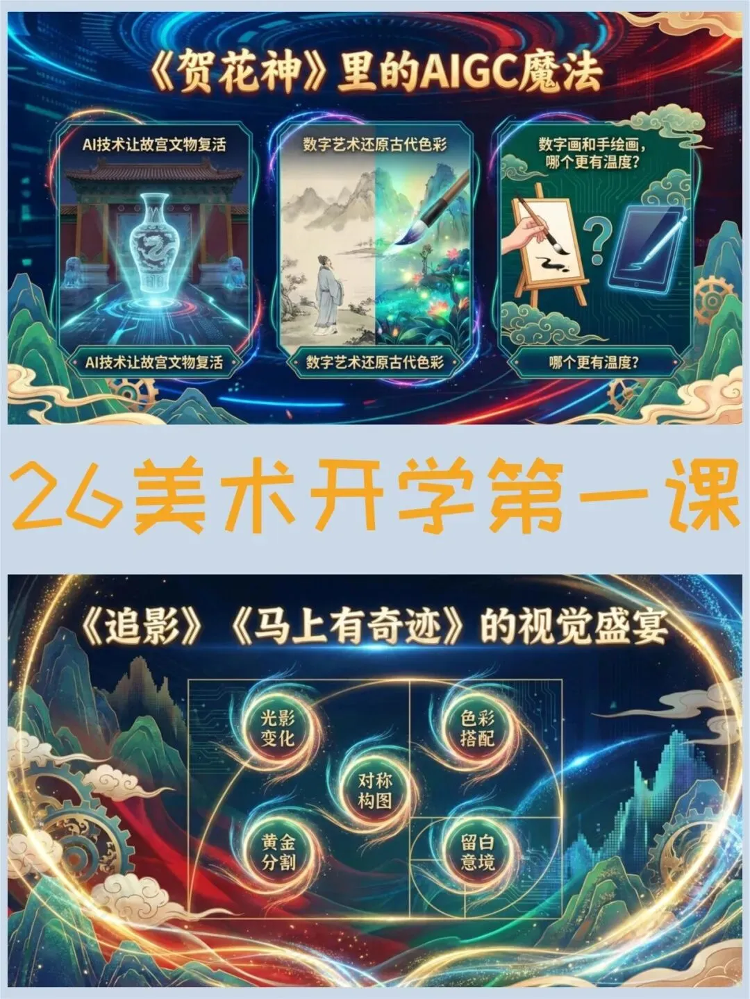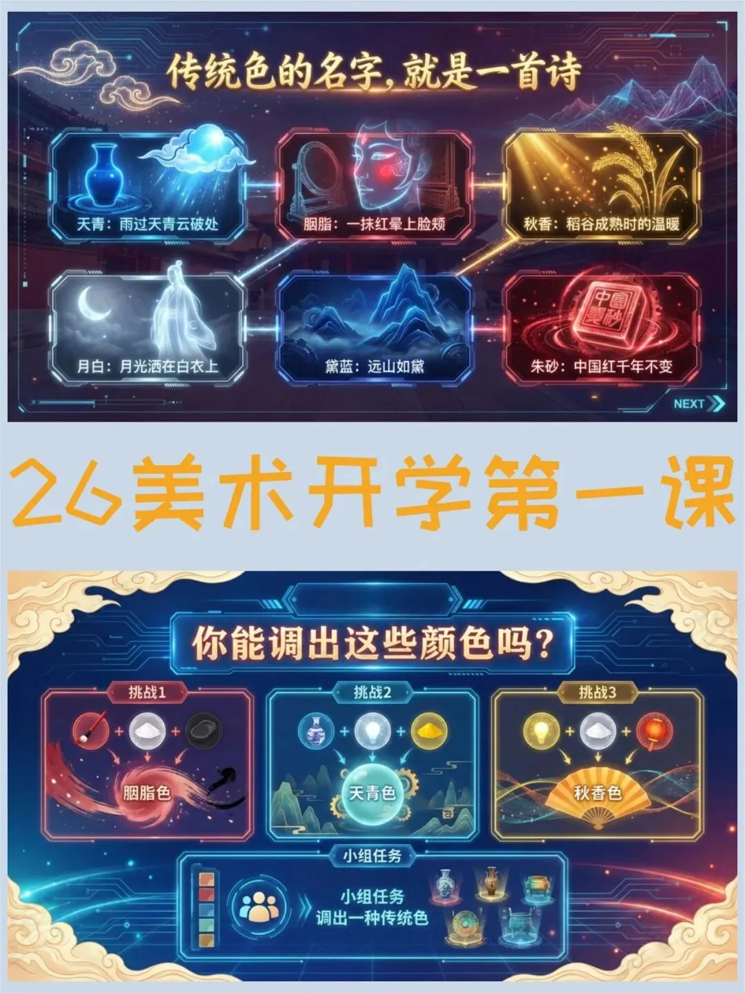 >美术开学第一课PPT,春晚里的中国颜色绝了(课件+发言稿)