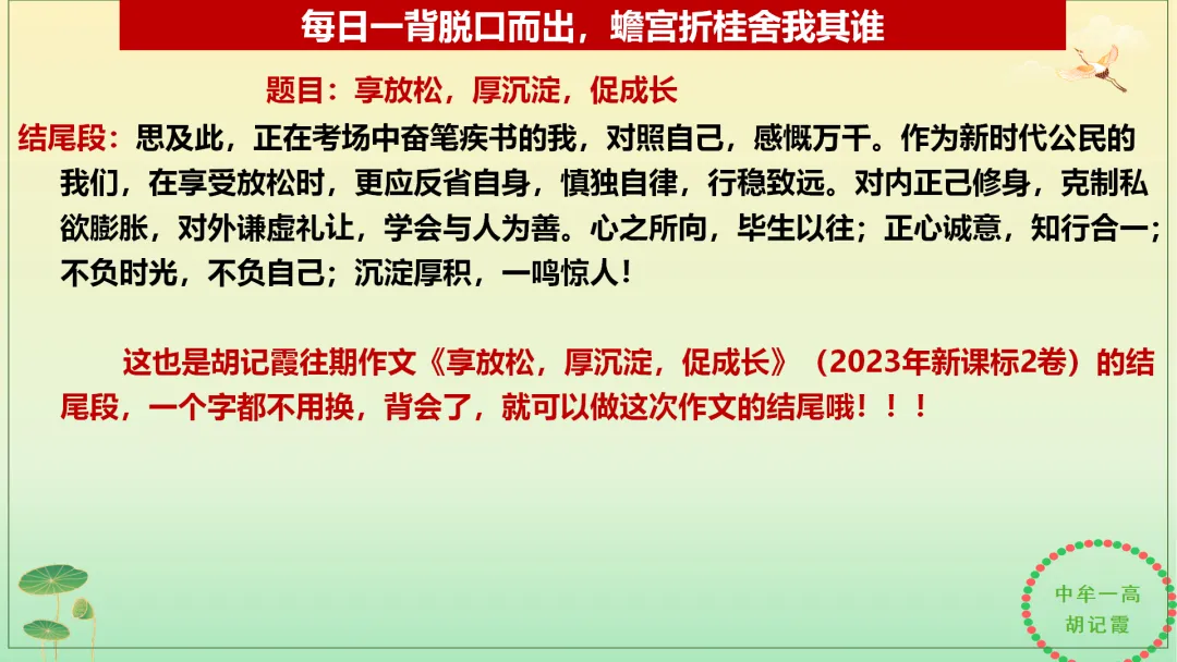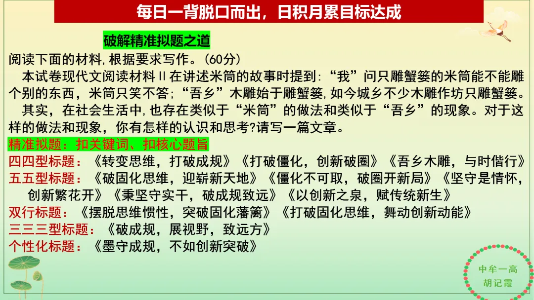 PPT+Word【胡记霞】2026年高考倒计时每日一背+每日一题第100—90天:通过回顾2025年高考真题,明晰2026年高考备考方向