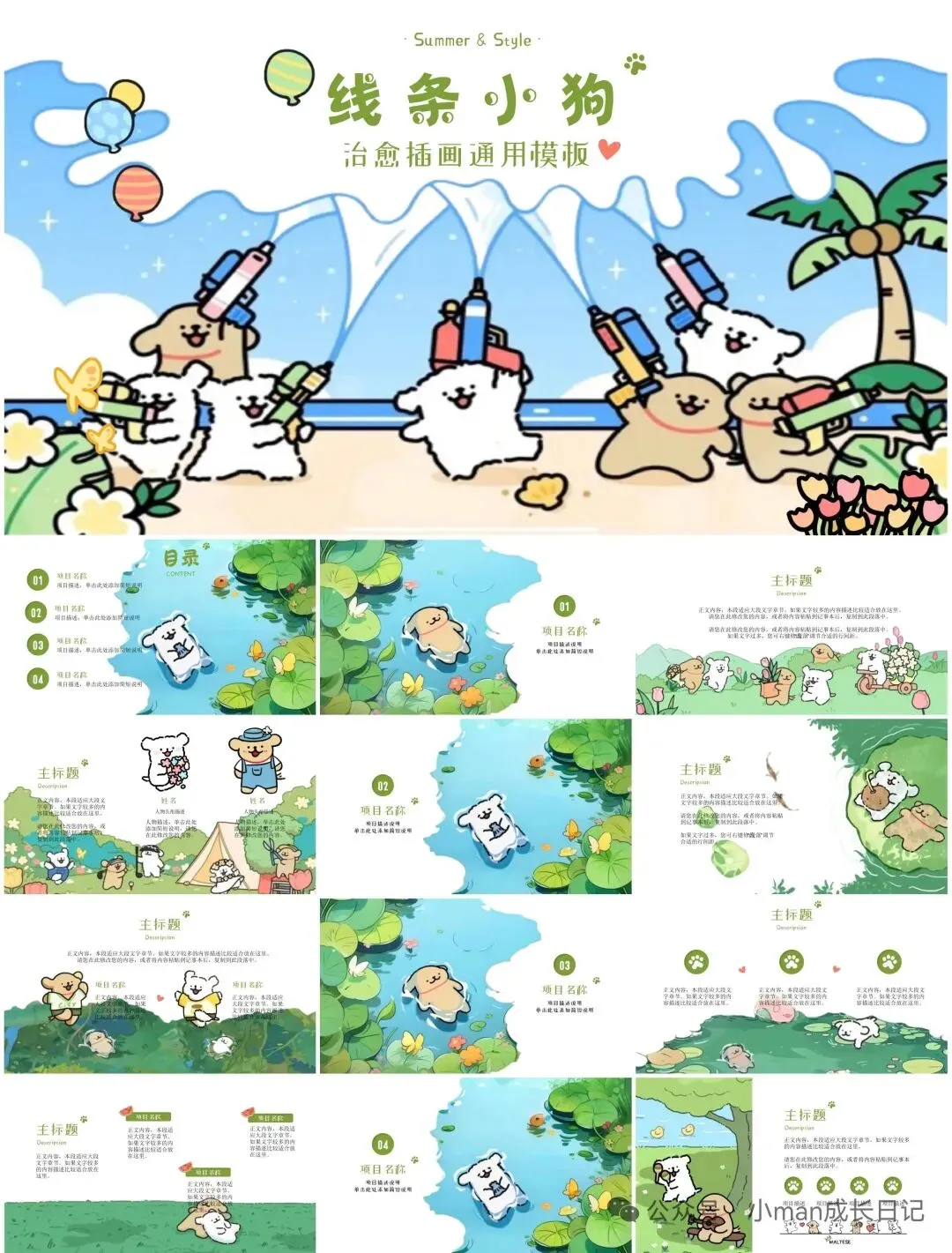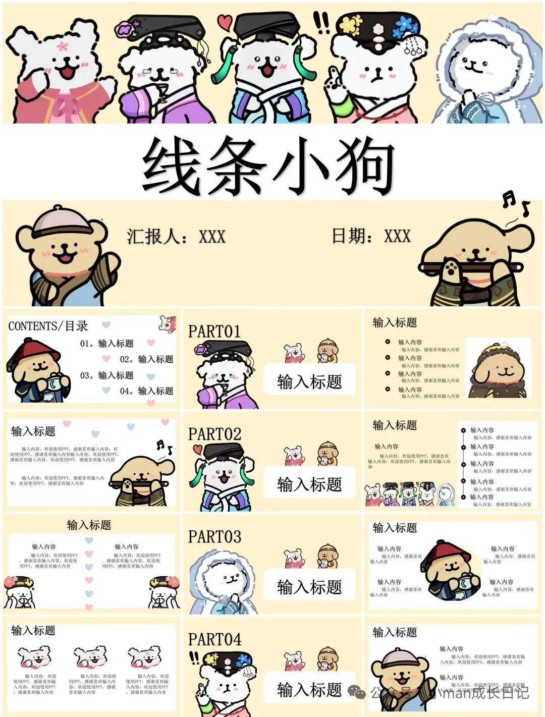 1.本文分享的是:【线条小狗ppt模板】