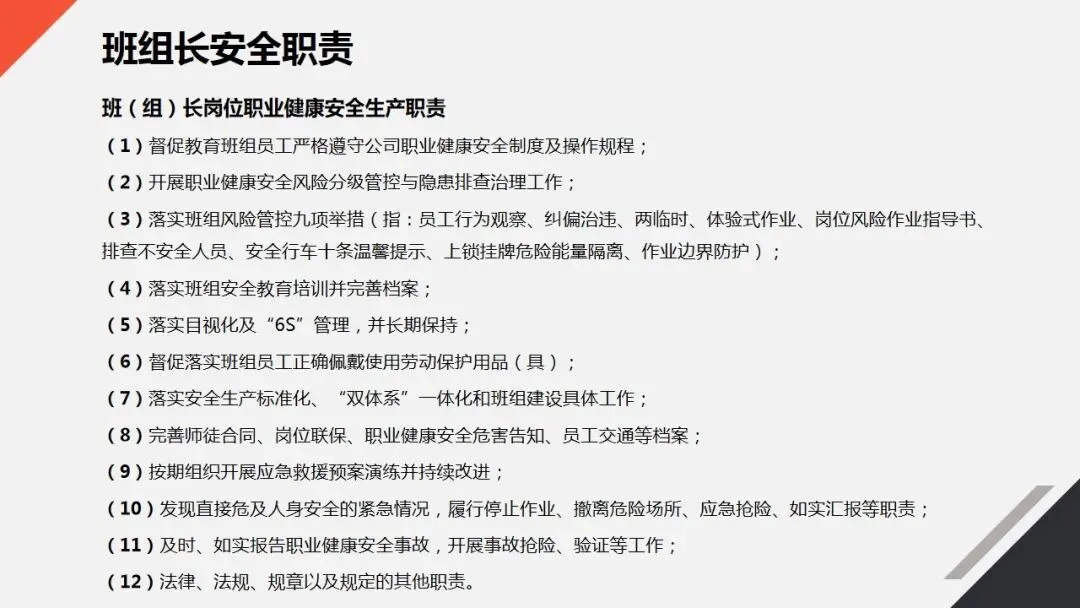 7)落实安全生产标准化、“双体系”一体化和班组建设具体工作;