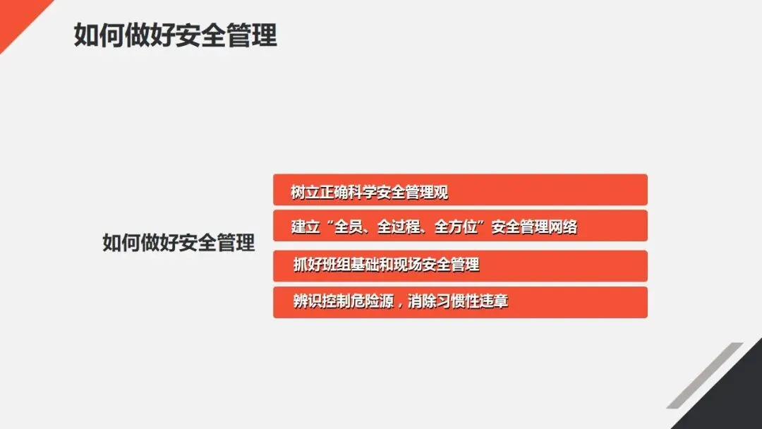 坚持有感领导,领导带头履职、以身作则,传递安全责任与决心;落实属地管理,谁主管、谁负责,守好各自责任区域;强化直线管理,层层压实责任,逐级落实管控。各岗位、各环节协同发力,形成横向到边、纵向到底的责任网络,以全方位、全过程、全覆盖的综合治理,为安全生产提供坚实可靠保障。
