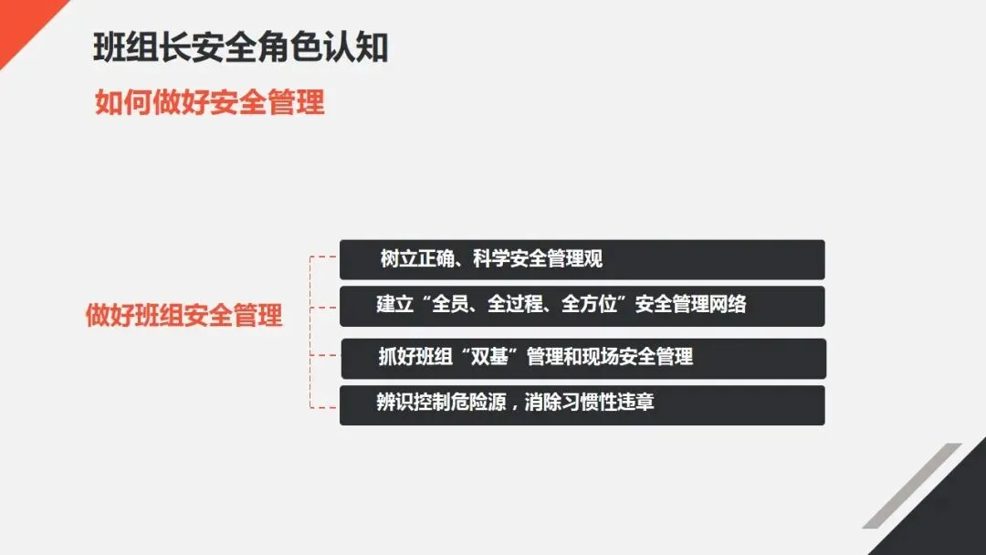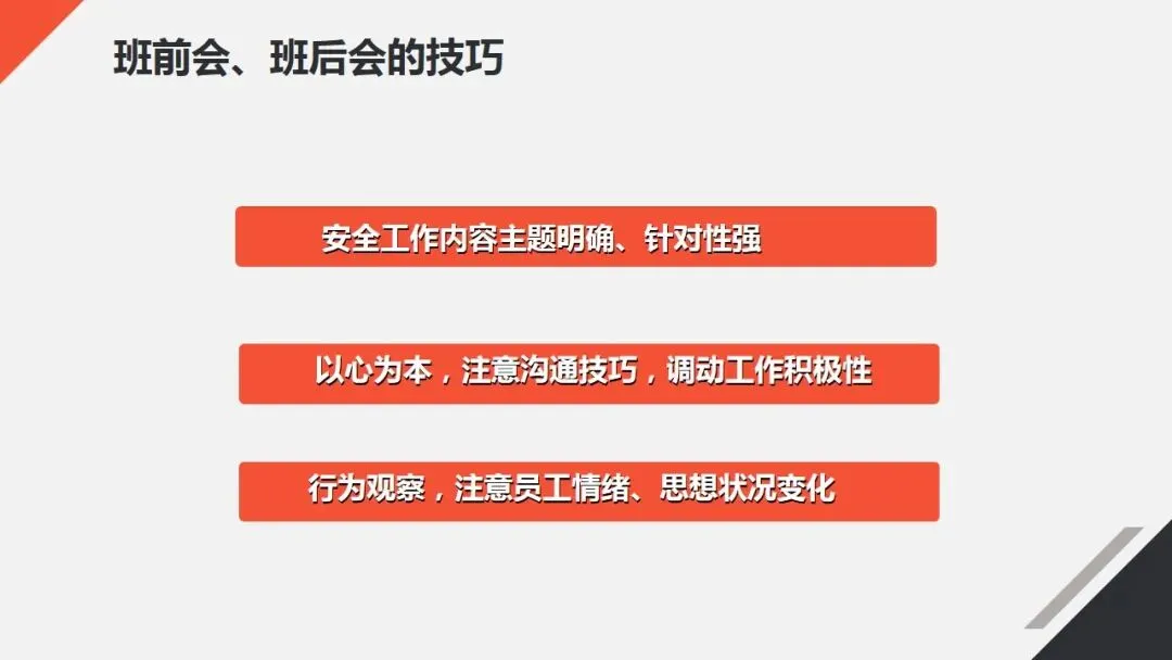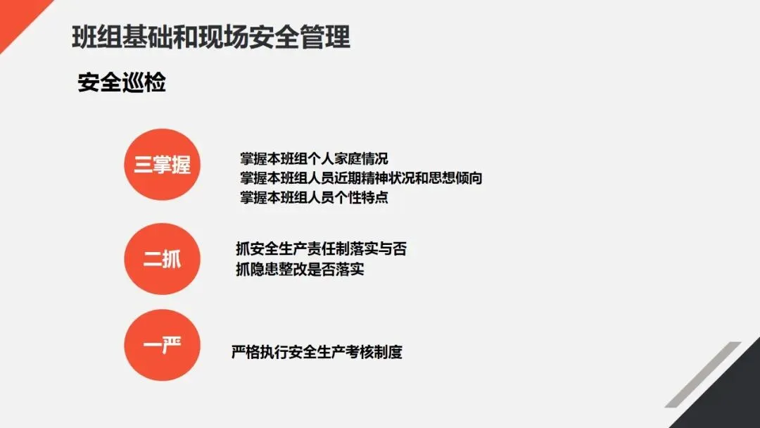 3)落实班组风险管控九项举措(指:员工行为观察、纠偏治违、两临时、体验式作业、岗位风险作业指导书、排查不安全人员、安全行车十条温馨提示、上锁挂牌危险能量隔离、作业边界防护);