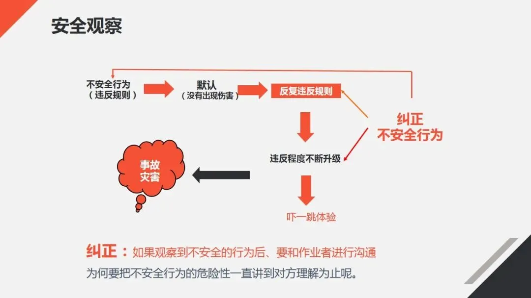 及时发现并纠正不安全行为是避免事故发生最为重要的工作。