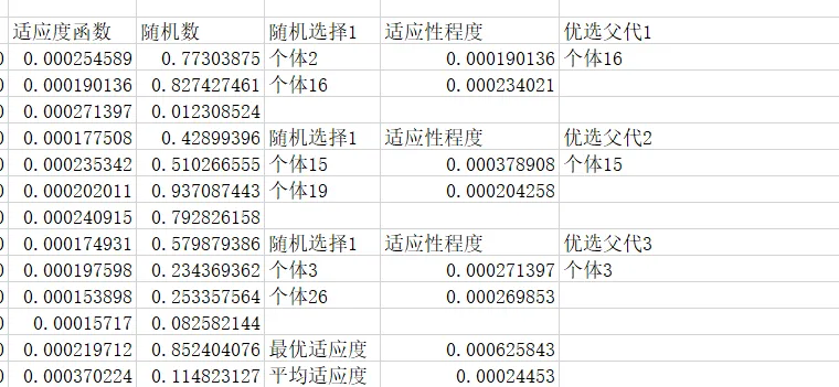 在Excel中是如何操作呢,为了让大家更好地掌握原理,我们选择随机选择3次。每次选择2个个体,然后挑选其中更优秀的个体,为后面的交叉操作做好准备。