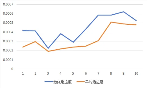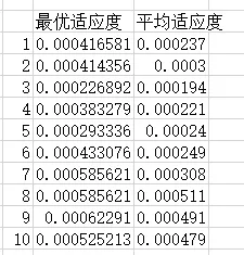 我们将每一代的最优适应度和平均适应度提取出来,组成一个表。其中适应度函数采用max实现,平均适应度采用average实现。