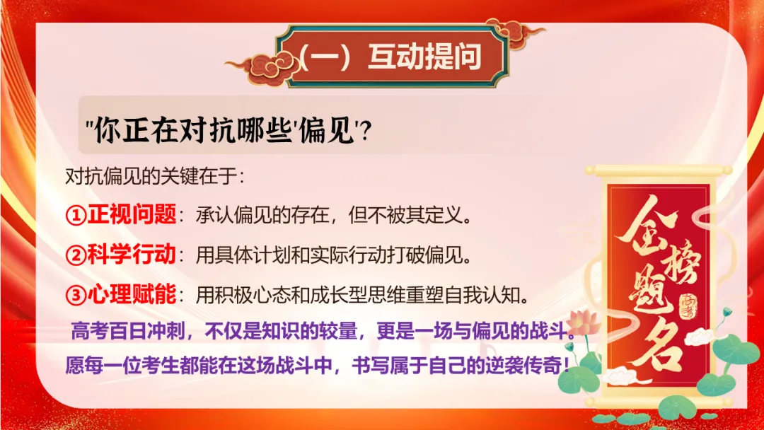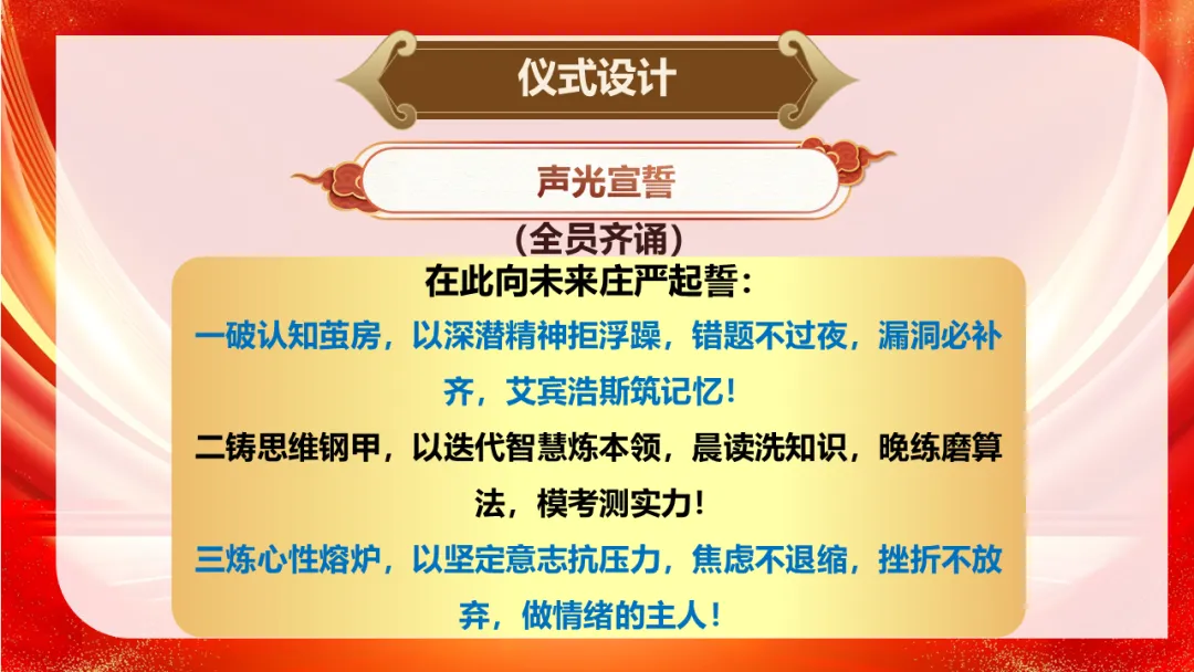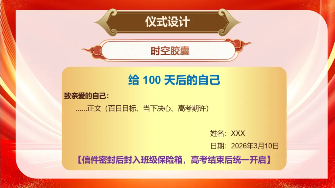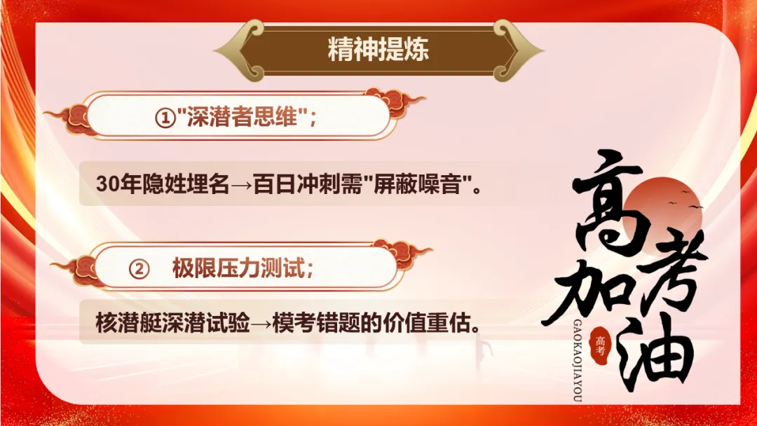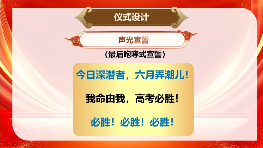 本期给大家分享的是高考百日冲刺主题系列ppt课件,作为高三阶段最具仪式感的关键节点,将抽象的时间压力转化为可视目标,将个体焦虑升华为集体信念,同时提供可执行的复习策略。