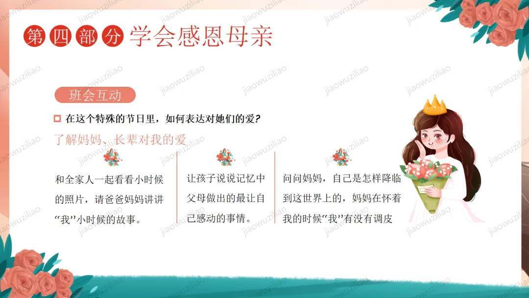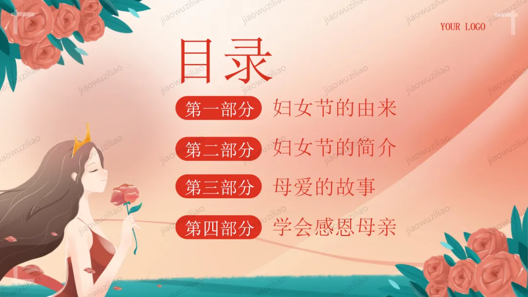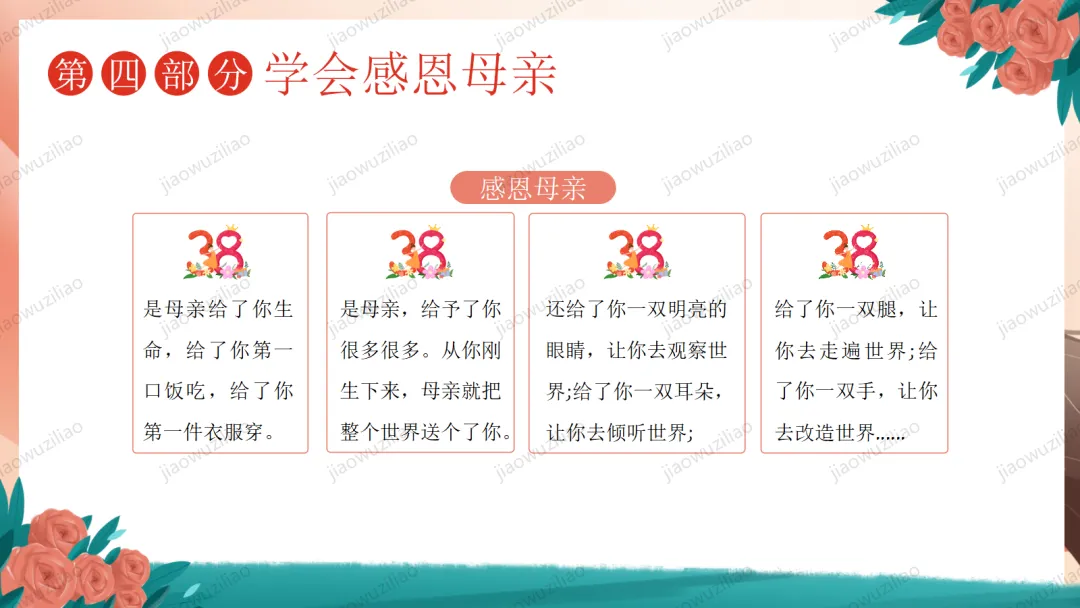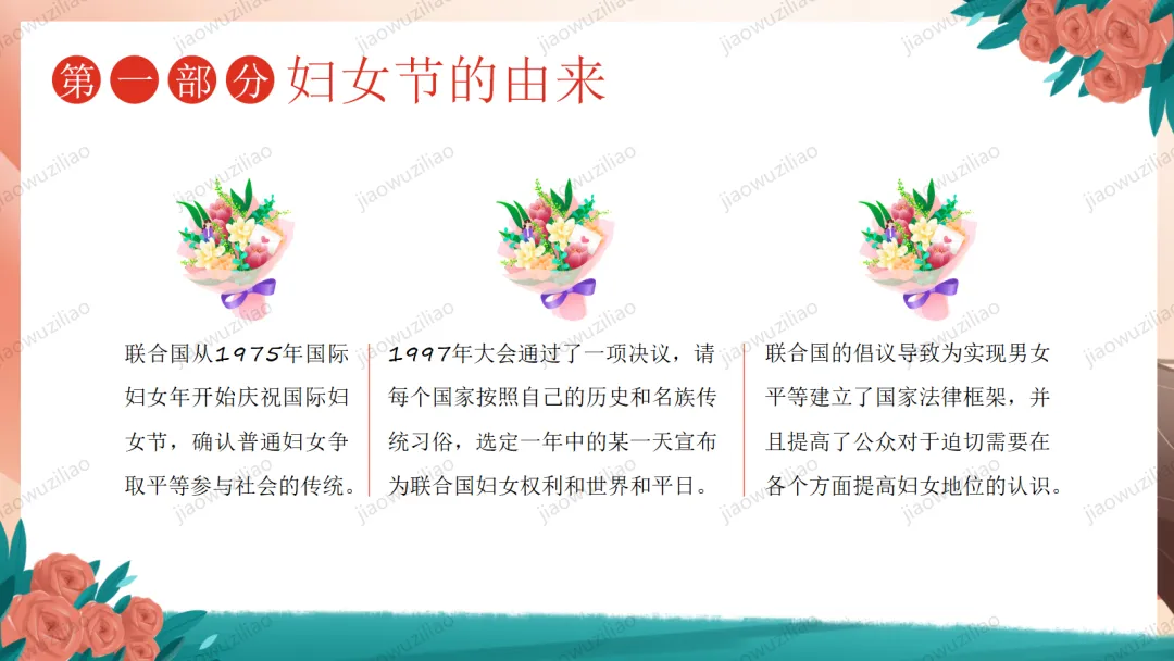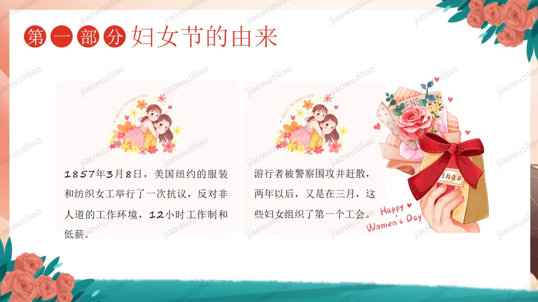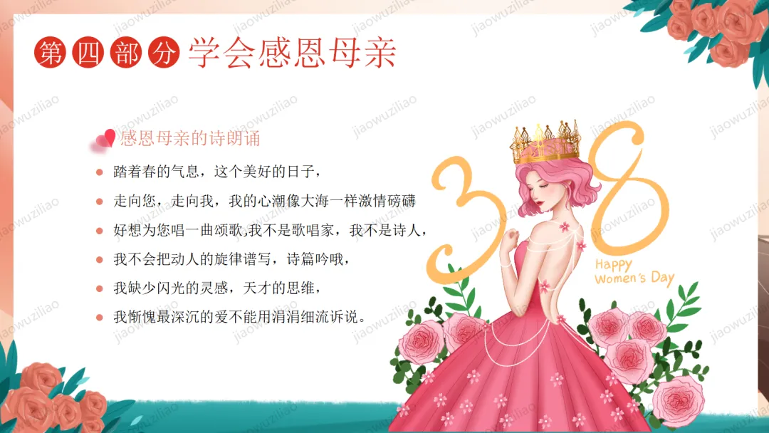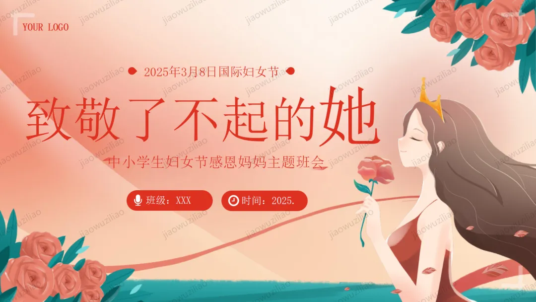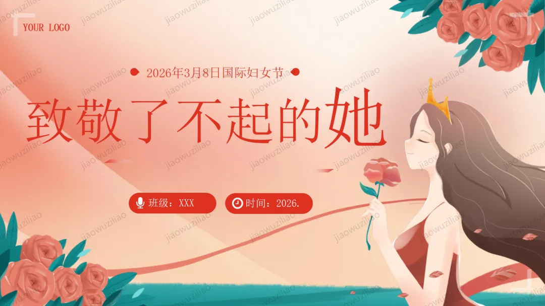 三月春风温柔,三八妇女节如期而至。在我们身边,有许多了不起的她:默默付出的妈妈,辛勤教诲的老师,细心照顾我们的长辈,还有勇敢坚强的女性榜样。她们温柔又有力量,平凡却又伟大。今天,让我们心怀感恩,把敬意与祝福送给每一位闪光的女性,学会尊重、懂得感恩,向了不起的她们致敬!这是一份3.8妇女节主题班会——致敬了不起的她PPT如果您对这篇课件感兴趣,文末有课件的获取方式(PPT无水印,可编辑修改)关注下方卡片公众号有偿获取。(关注后+小编好友,再发课件的编号【3056】或截图。)免责申明:此资料来源于网络公开资源,仅用于学习交流使用,售价为整理资料的费用,我们尊重原创,版权归原作者。,如果侵犯到您的权益,请第一时间联系我们,我们将立即更正或删除相关内容.