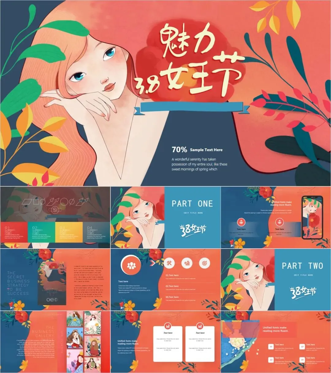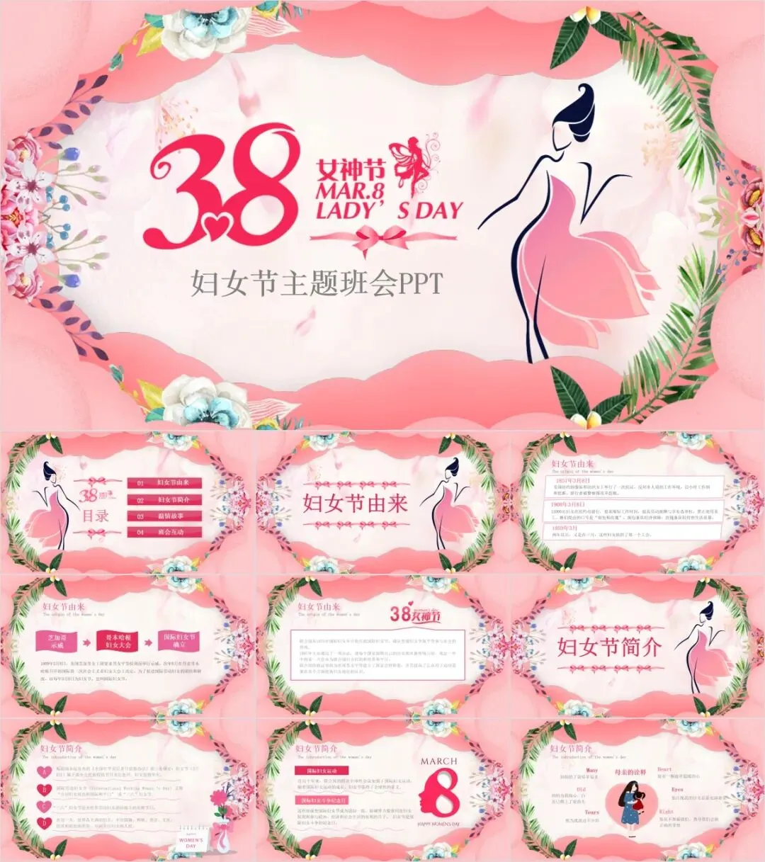 PPT模板适用范围:妇女节、女王节、女神节,主题班会,教学课件,活动策划,毕业答辩,商业计划,品牌介绍,企业培训,方案汇报,自我介绍....