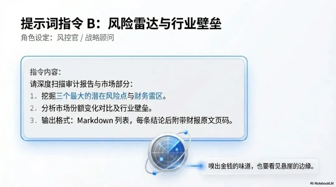 将年度财报、季度审计、甚至竞争对手的调研报告全部丢进 NotebookLM。它不仅能阅读,还能理解文档间的关联。