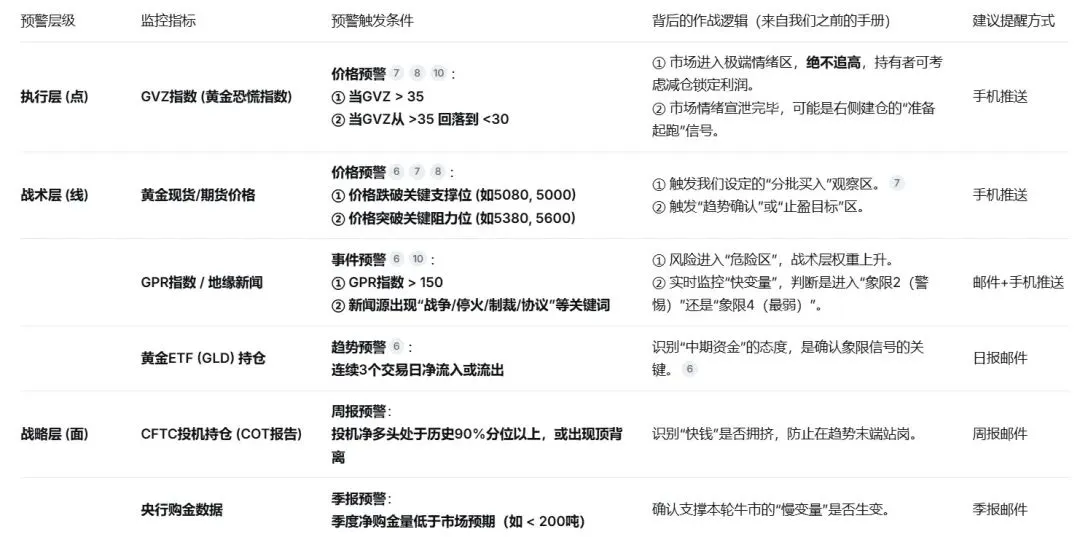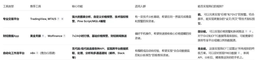 建议是: 对于大多数投资者,可以先从黄金天眼或TradingView入手,先把价格和GVZ这两个“执行层”和“战术层”最基础的指标盯起来。当熟练之后,再考虑用n8n这类工具搭建更复杂的“战术层”和“战略层”预警。