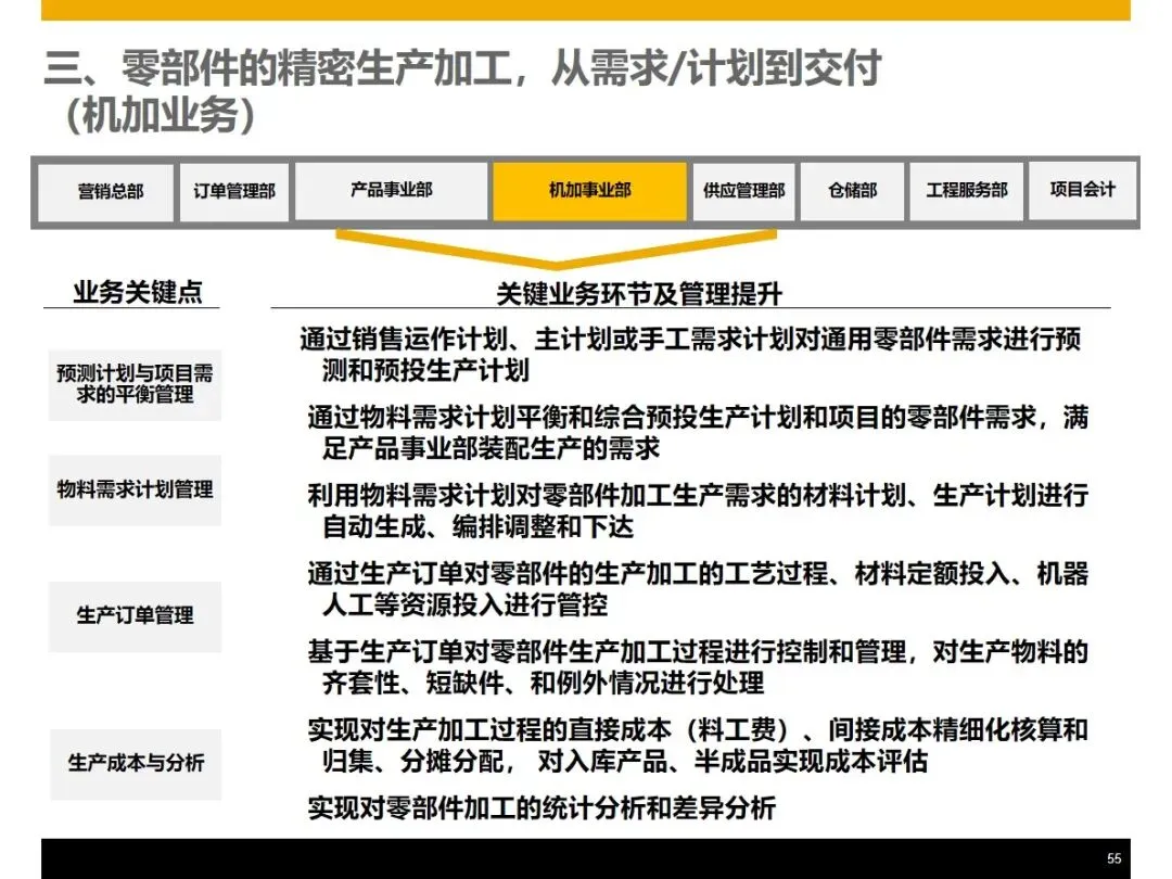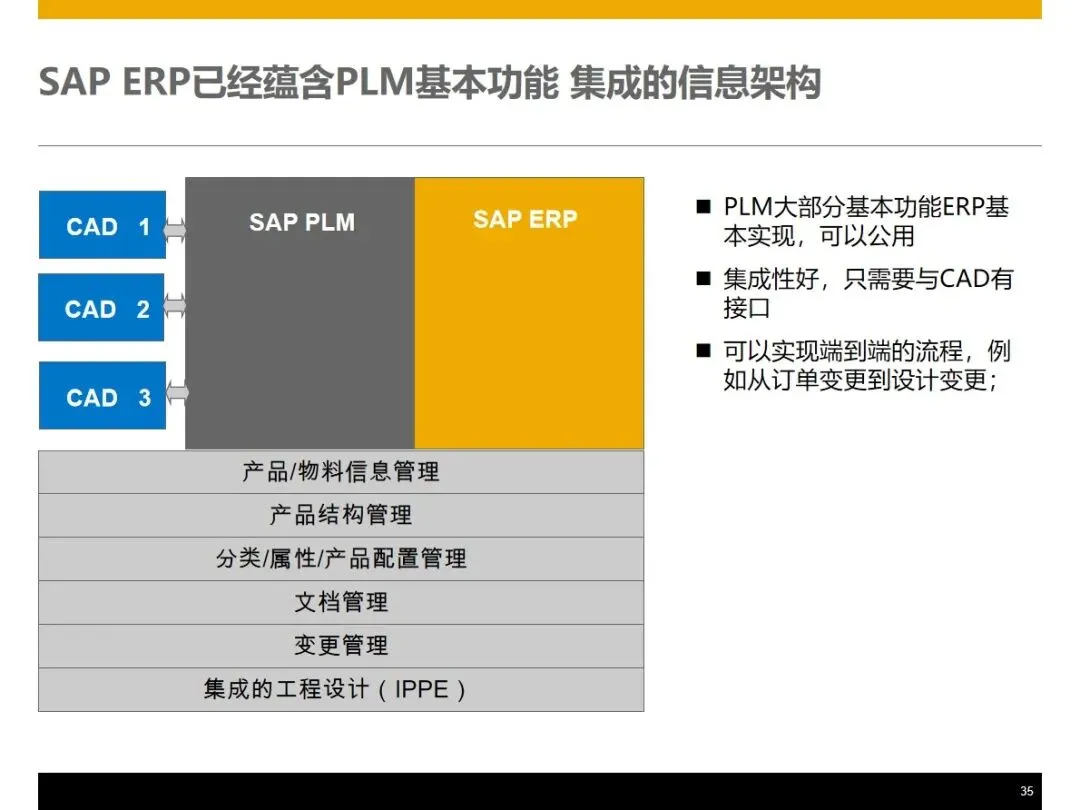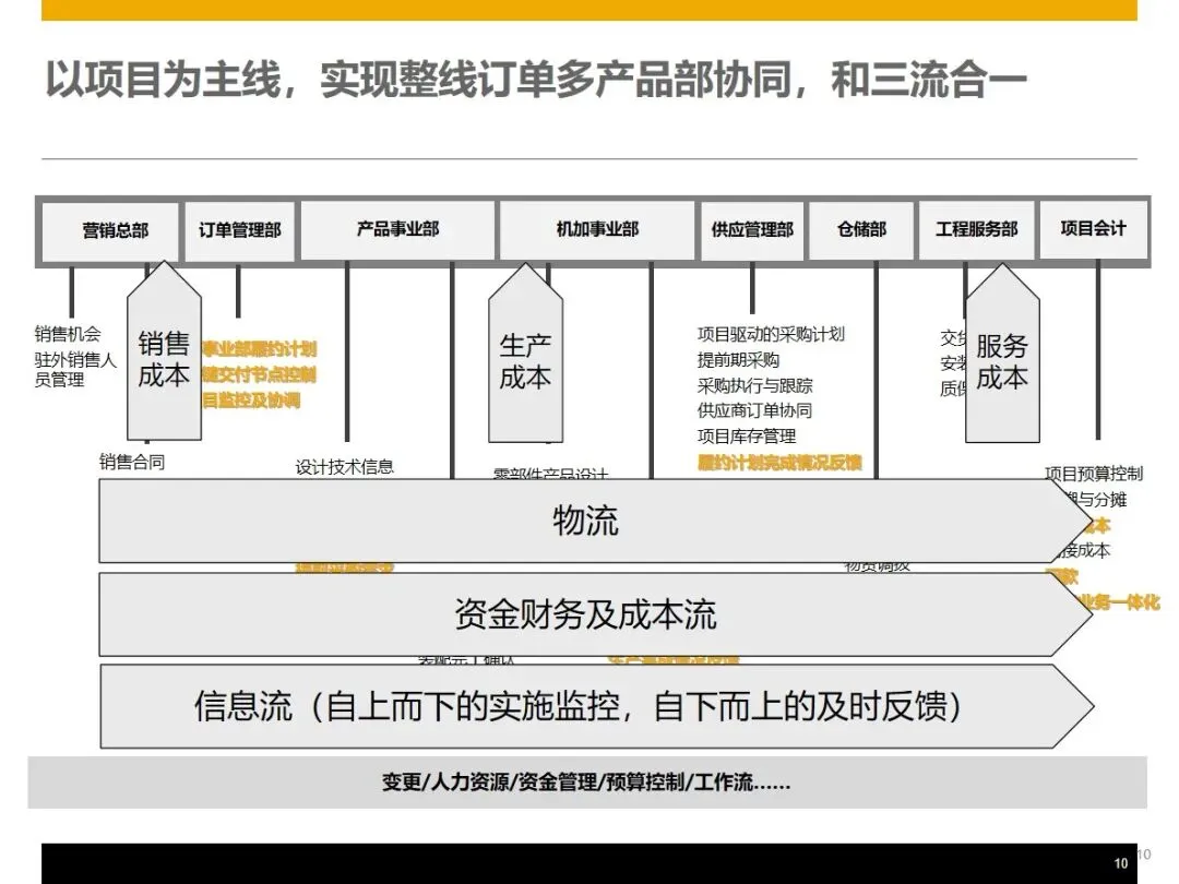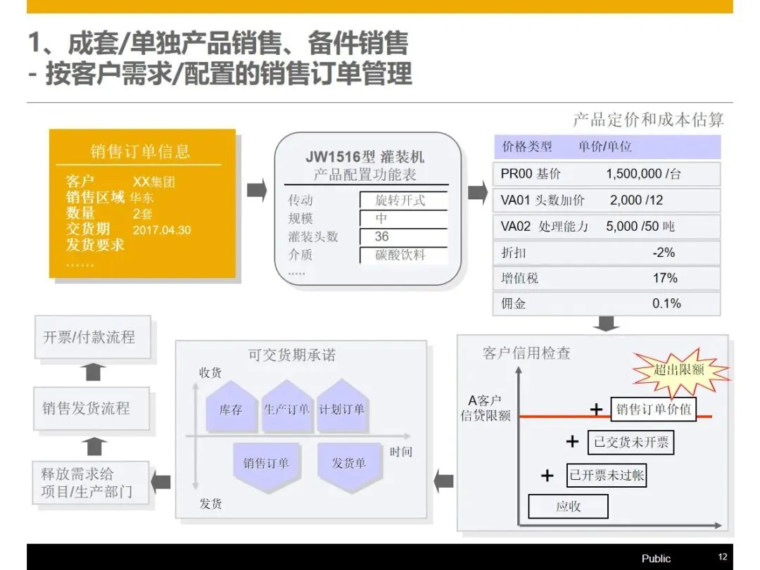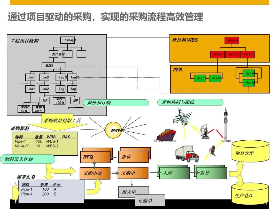 该方案基于WBS的工作分解架构,将订单管理,产品设计,生产组装,采购供应,仓储物流,现场服务,财务管理等核心业务模块进行整合,实现了企业的信息流,物流和资金流的“三流”整合,并在此基础上提出了基于 WBS工作分解架构的客户关系管理系统,实现了基于 WBS的客户关系管理系统的客户关系管理。在销售方面,能够完成产品组合配置、定价、里程碑开票、资金回收追踪等功能,并能按照项目进度自动生成资金回收计划,对客户的信用评价和风险控制同步进行;在设计阶段, PLM和 ERP系统的集成使得 CAD BOM的快速导入和基础 BOM、变化 BOM和项目 BOM的柔性调节成为可能,从而实现了对客户个性化需求的精确匹配。