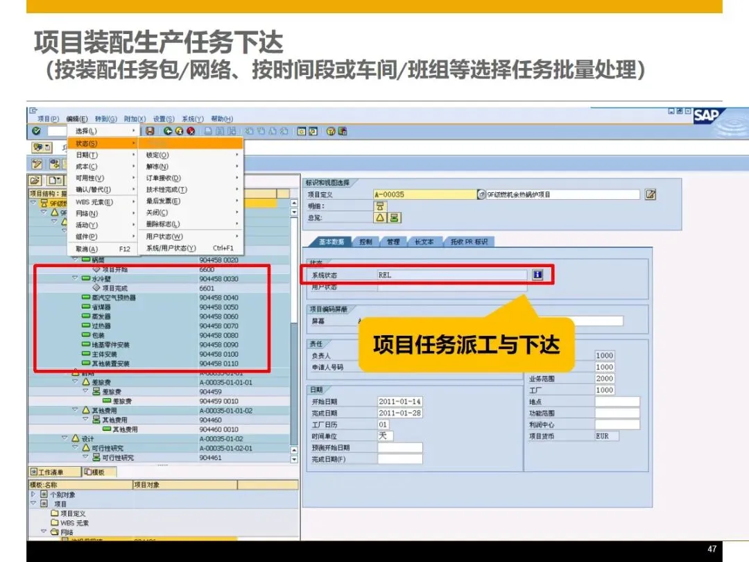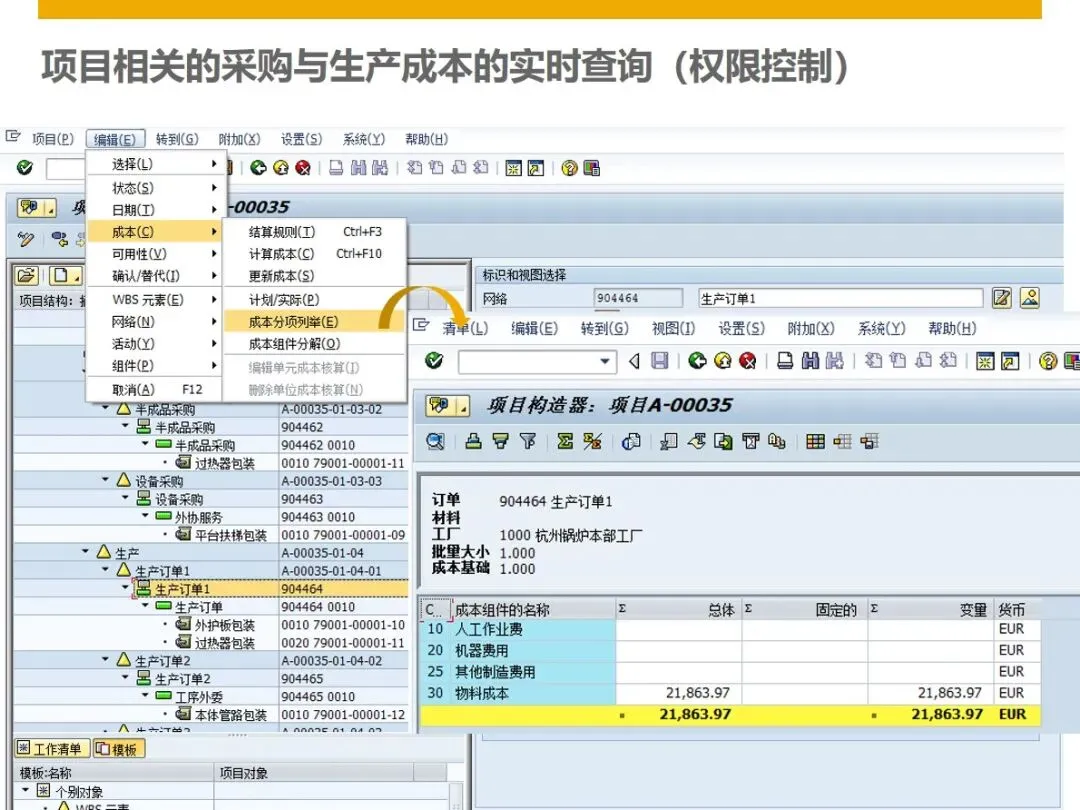 现场维修将工程管理扩展到了安装调试阶段,利用维修工单对人、机、料、法进行全方位的控制,及时反馈工程进度,收集维修费用。财务核算从预算编制到过程控制再到最终结算,全面覆盖项目成本的动态控制,对超预算进行及时预警,对项目利润进行准确核算,并对成本差异进行分析。