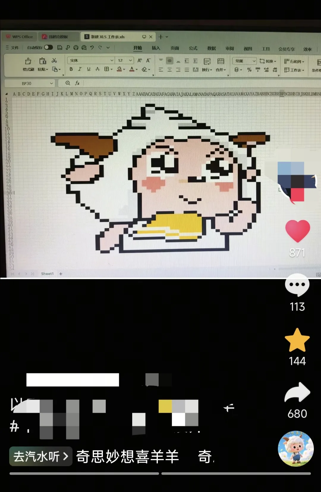 某天抖音刷到一个视频,是用Excel画了一幅卡通画,觉得很有意思,决定实现一个能自动识别图片并绘制Excel像素画的小工具。