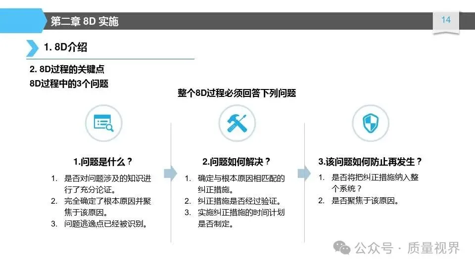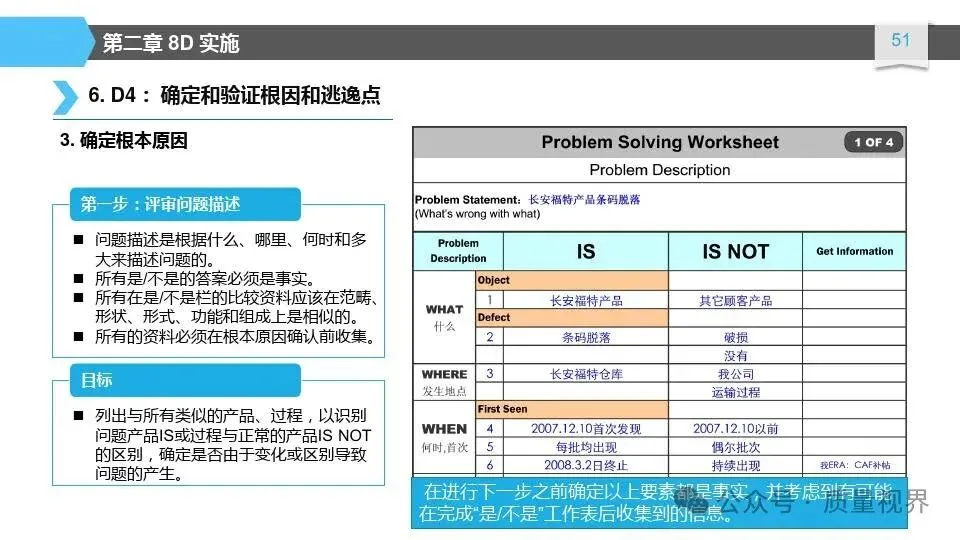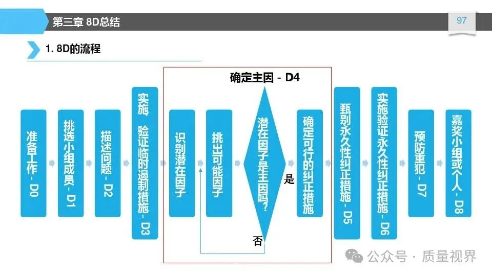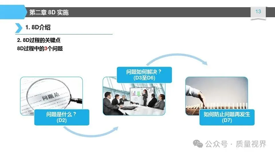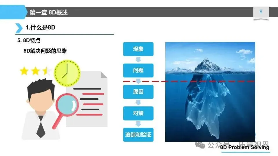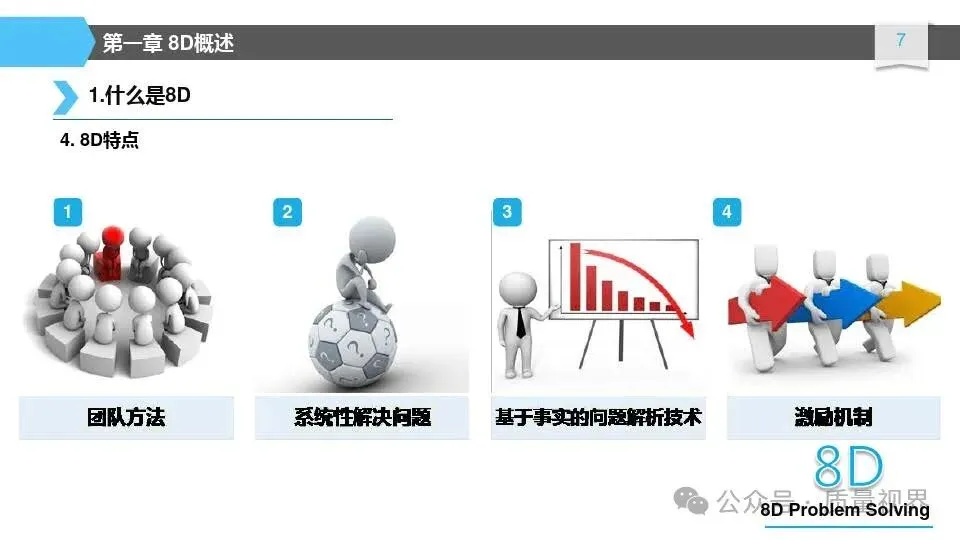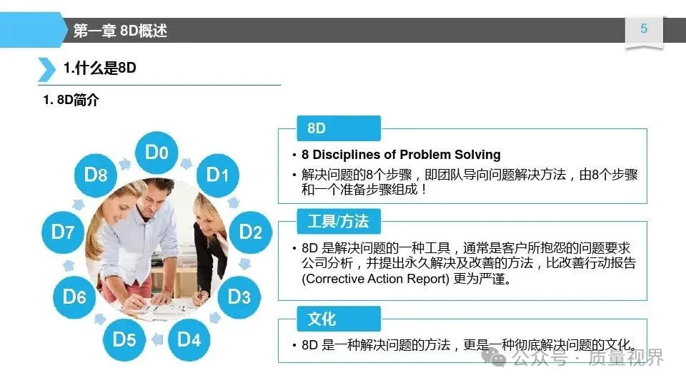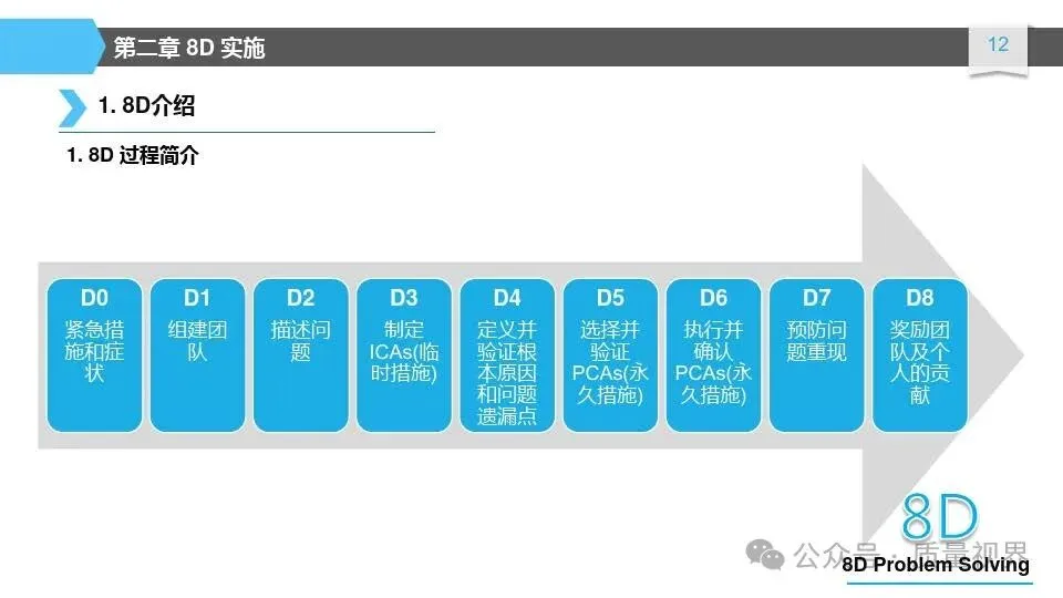 8D问题解决方法是一种经典的质量工具,广泛应用于问题解决和品质改进的过程。其核心理念是通过系统地分析问题,找出问题的根本原因,并采取有效的措施来解决问题,以达到持续改进的目8D问题解决方法的具体步骤
