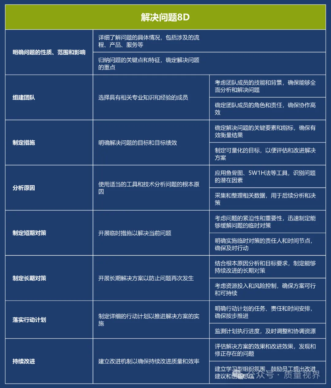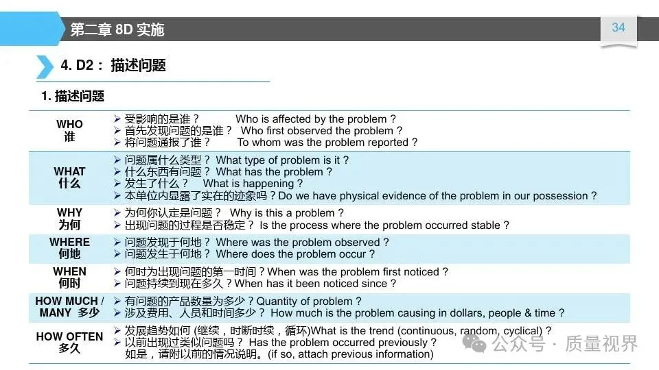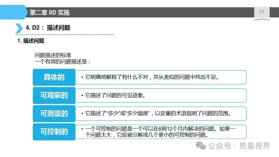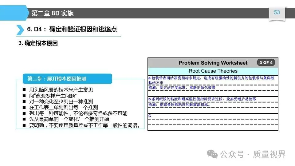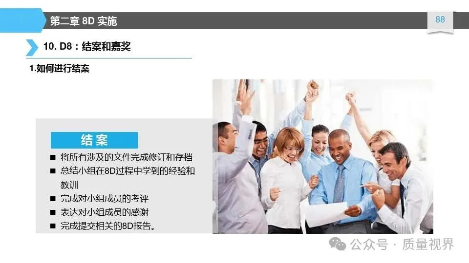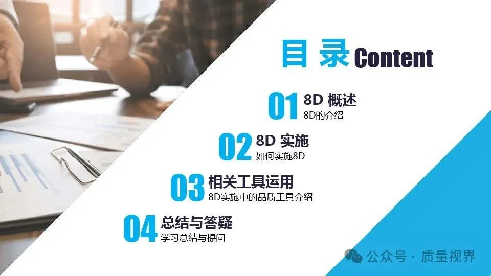 8D问题解决方法是一种经典的质量工具,广泛应用于问题解决和品质改进的过程。其核心理念是通过系统地分析问题,找出问题的根本原因,并采取有效的措施来解决问题,以达到持续改进的目8D问题解决方法的具体步骤