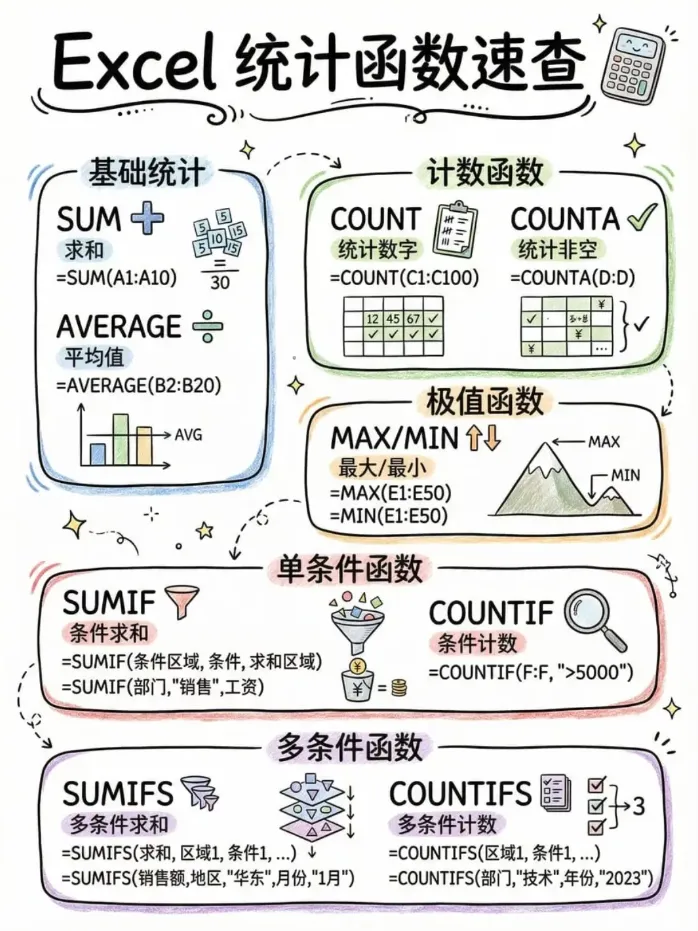 四、计算统计类(12个)——SQE核心用于不良品统计、供应商绩效计算