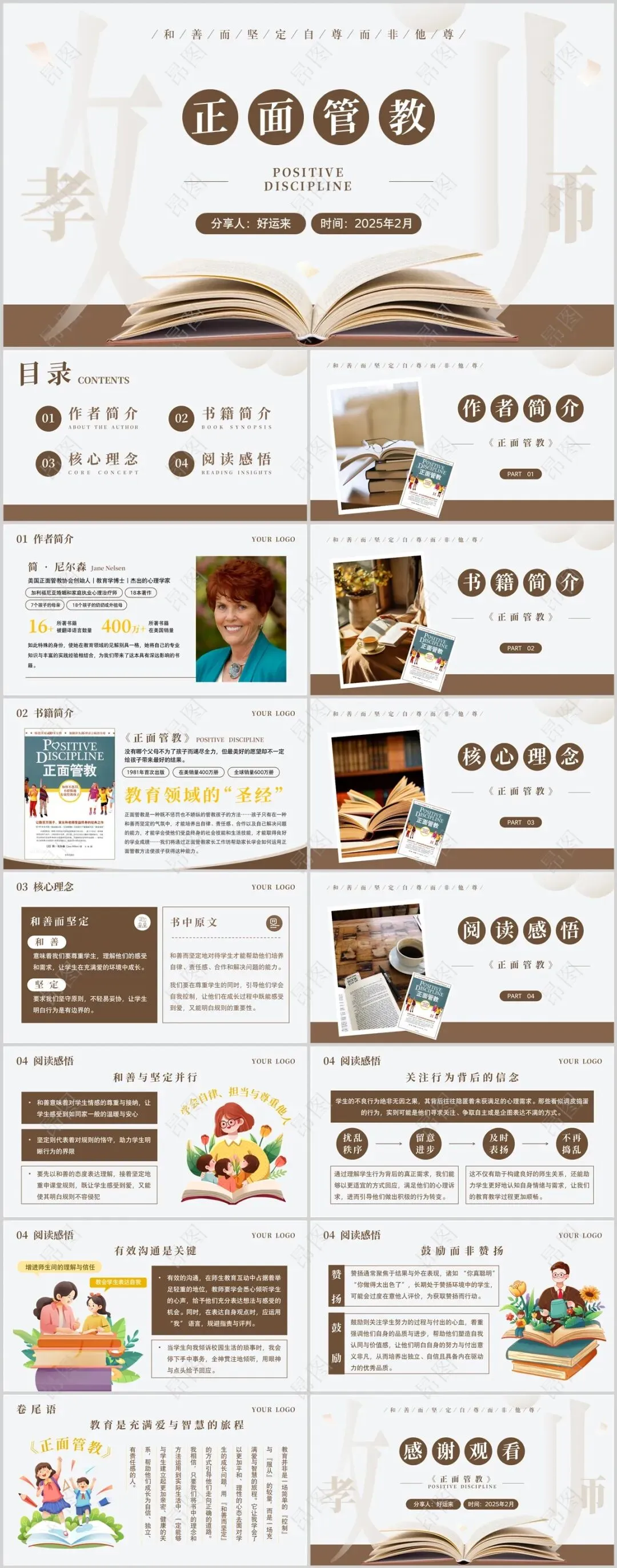 简 · 尼尔森《正面管教》教师读书分享ppt成品15页附带演讲稿2300字